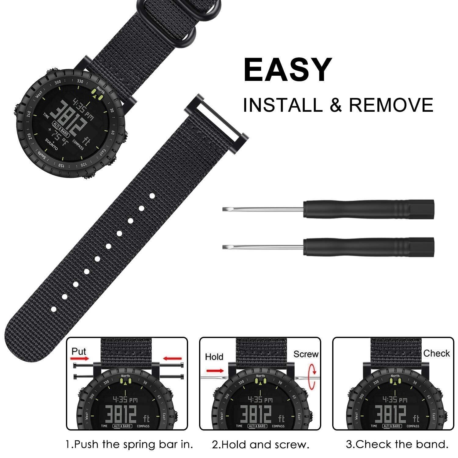 for Suunto Core 対応バンド ベルト スポーツバンド 交換用ストラップ ウォッチベルト ソフト ナイロン製 調節可能 通気 おしゃれ (1ブラック)