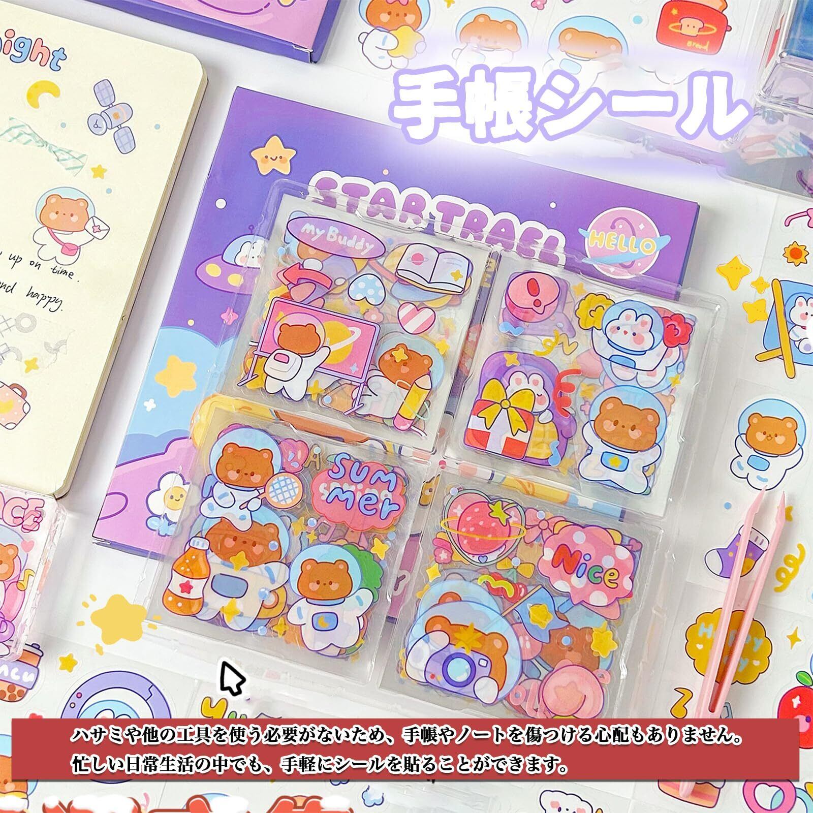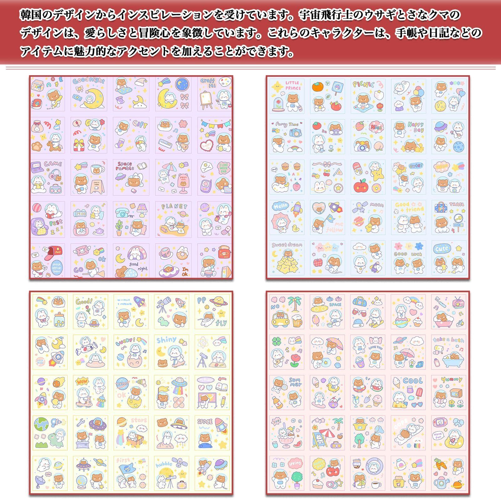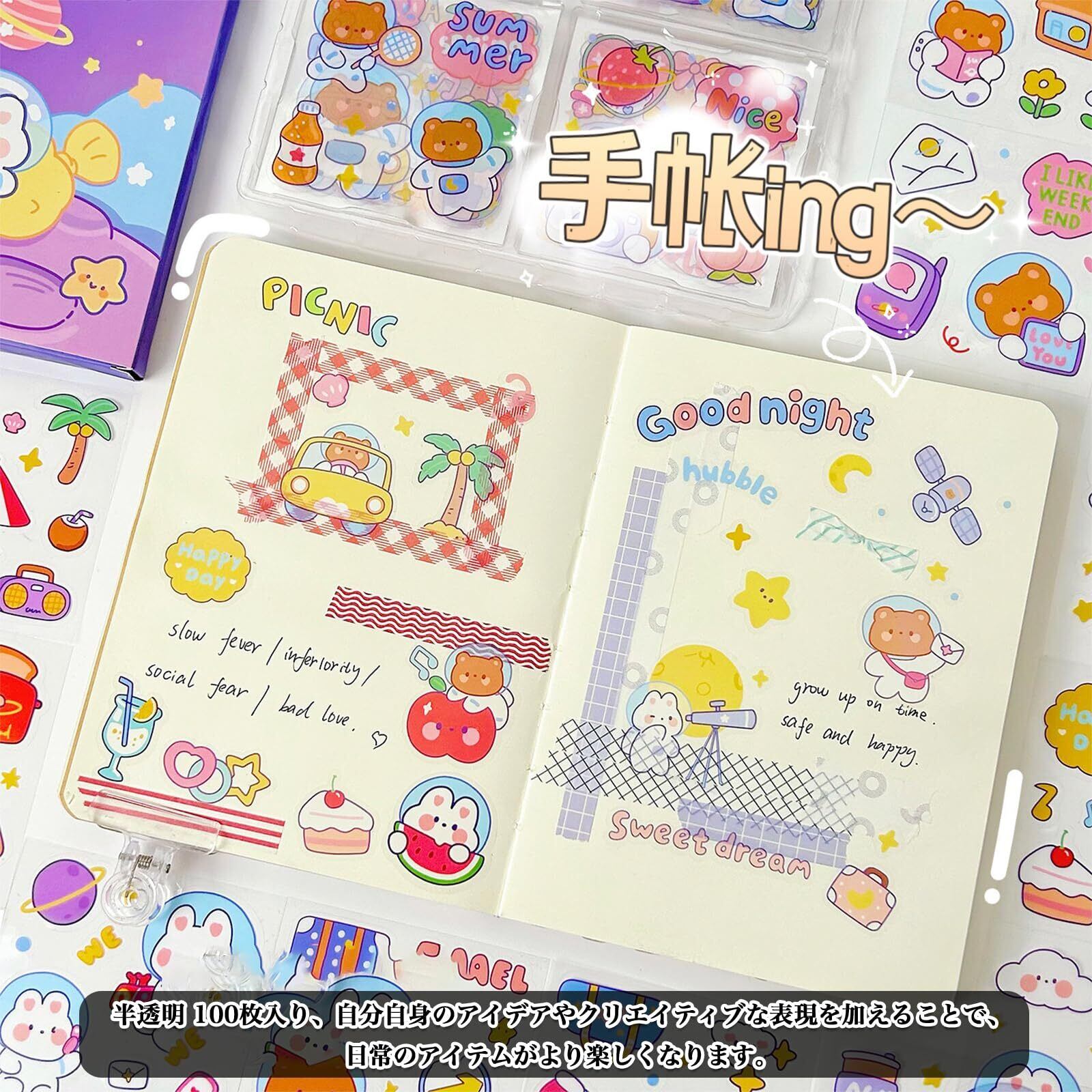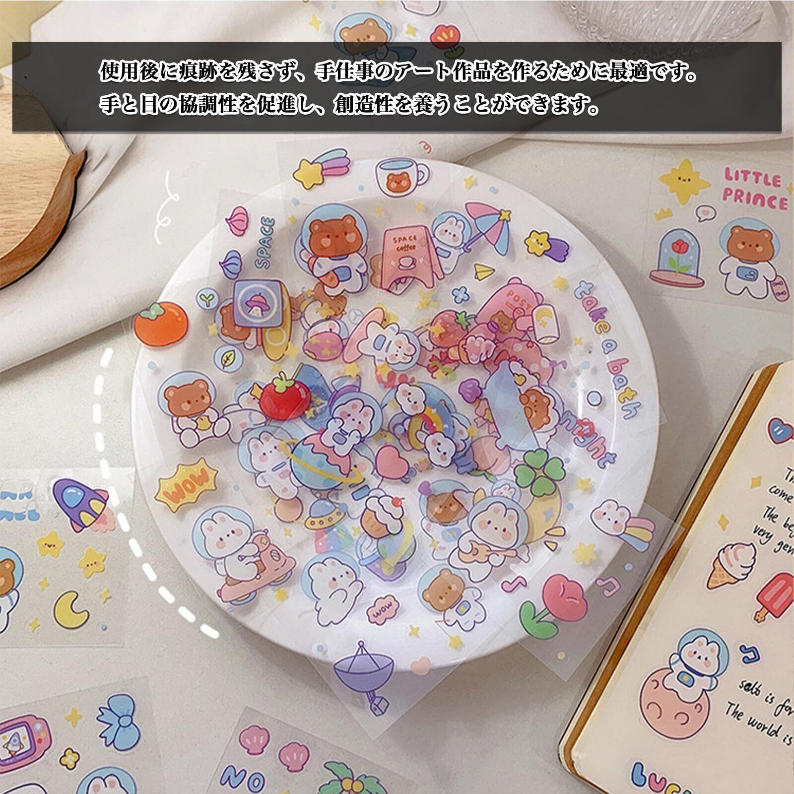 MAEXUS 手帳シール 半透明 100枚入り スペースシリーズ 日記シール 可愛い 手帳 ステッカー コラージュ素材 シール 手帳用シール DIY 手作り 大量装飾用 宇宙飛行士のウサギとさなクマ