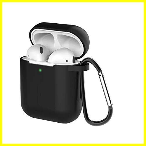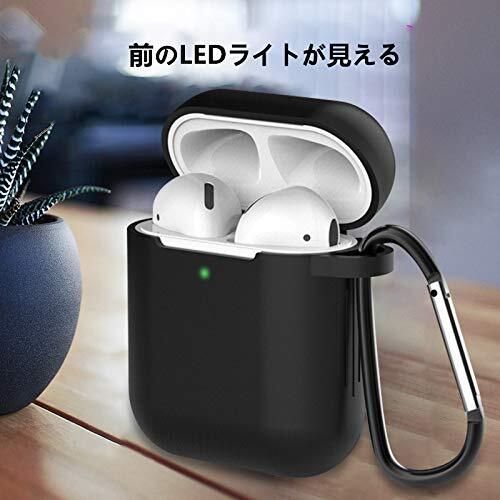 AirPods ケース AirPods第2世代と第1世代に適用(前のLEDライトが見える) シリコンカバー 全面保護ケース Apple エアーポッズ カバー 軽量 小型 かわいい TPUケース 耐衝撃 防塵 カラビナ付き 紛失防止 SERFER (ブラック)