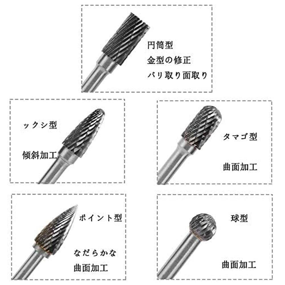 このタングステンバーセットはφ6mmシャンクです。軸径(mm):6mm 刃径(mm):8mm 全長:57-64mm