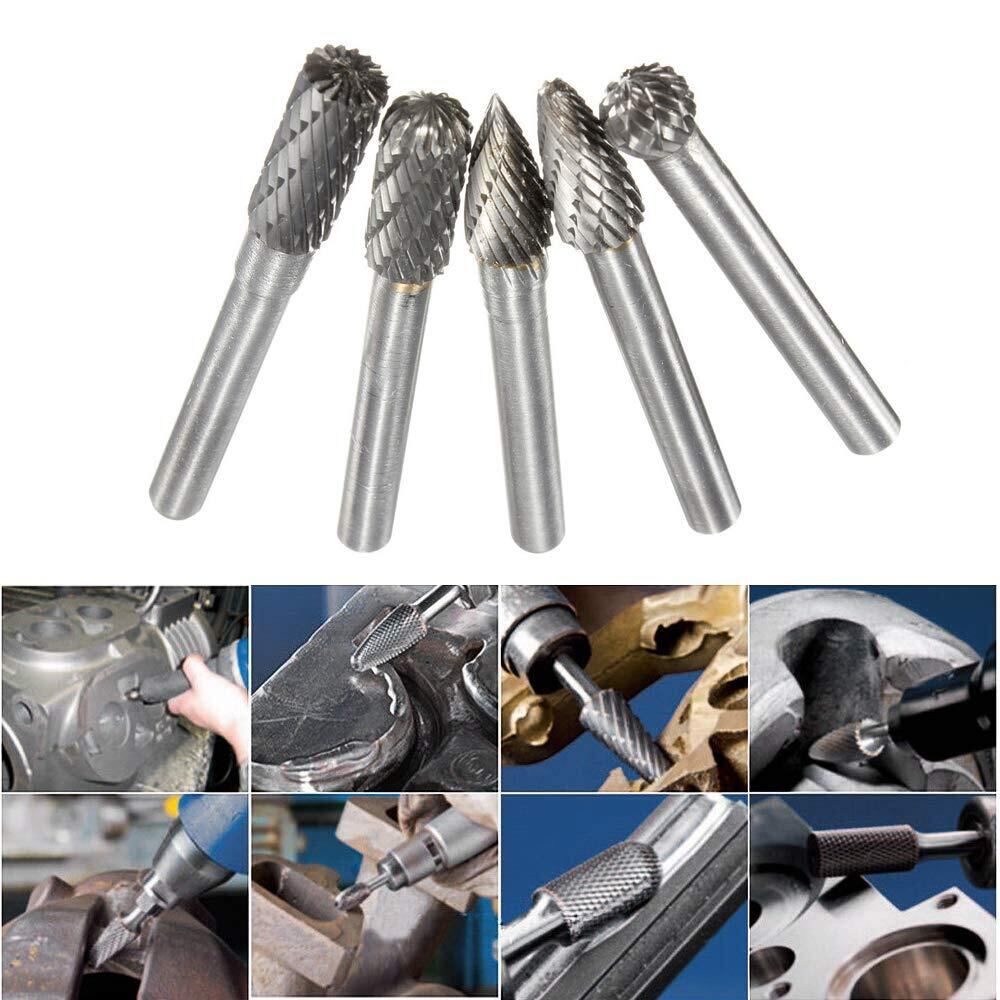 Bestgle超硬バー 5本セットタングステンバー 6mm軸 刃幅8mmリューター ビット ドリル カッターダブルカットタングステンカーバイドロータリーファイル切断バーツールロータリードリルダイグラインダービット超硬フライスカッター金属バー 超硬ドリルビット