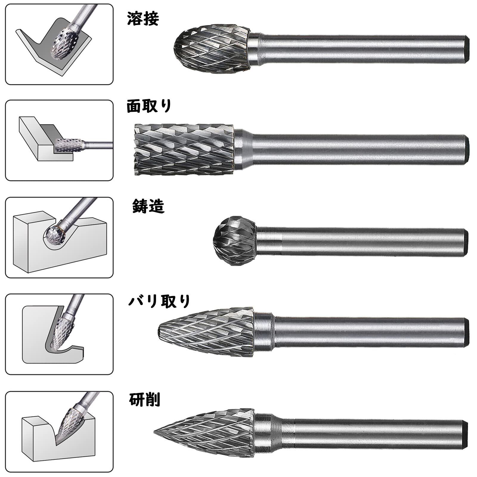 超硬カッターの適用範囲:研削、彫刻と整形で鋼、鋳鉄、真鍮、銅、広葉樹、プラスチック、など。あらゆる金属、非鉄金属、樹脂の研削、バリ取り、面取りを始め、ホビー用にも使用できます。 2種類のパッケージ、ランダム配送。
