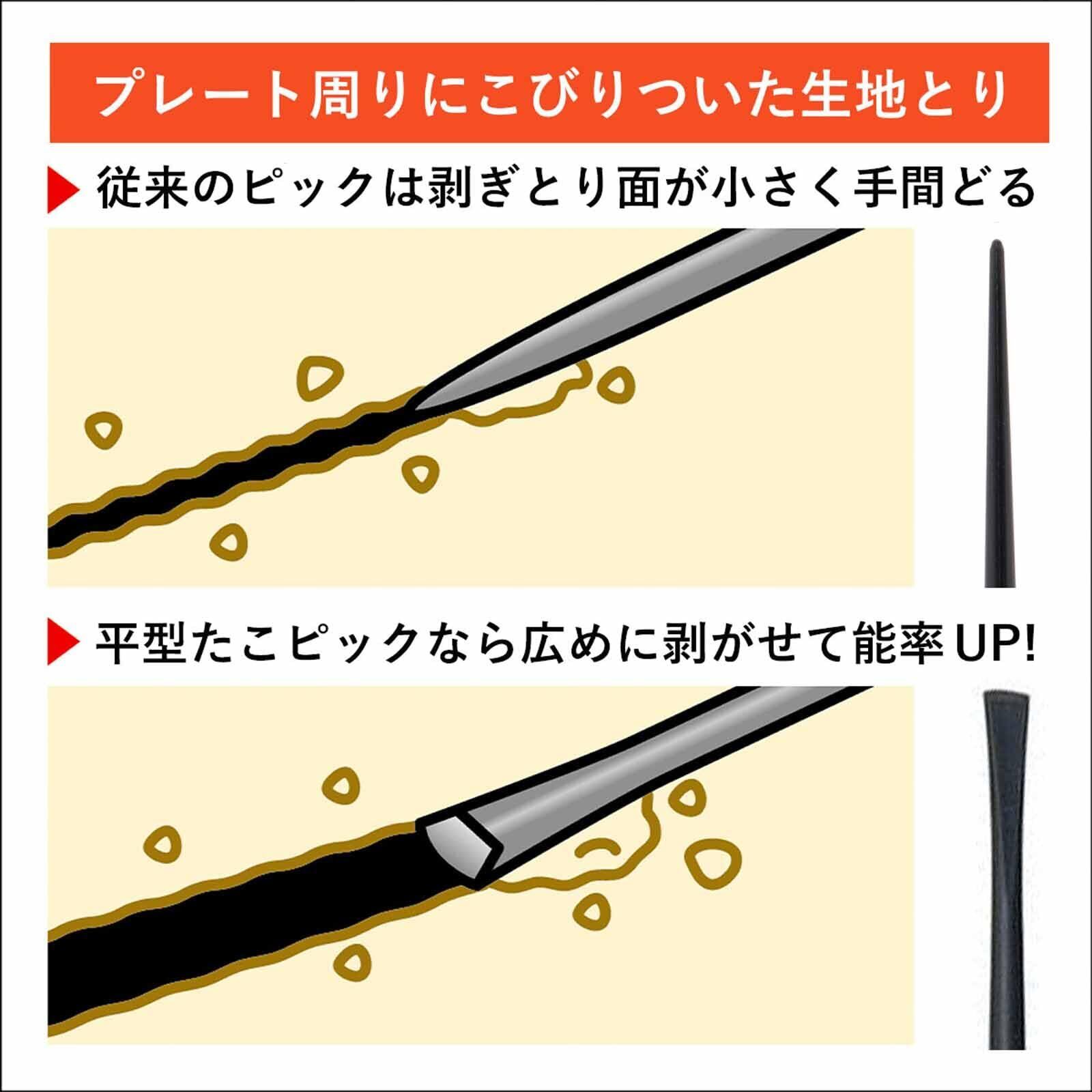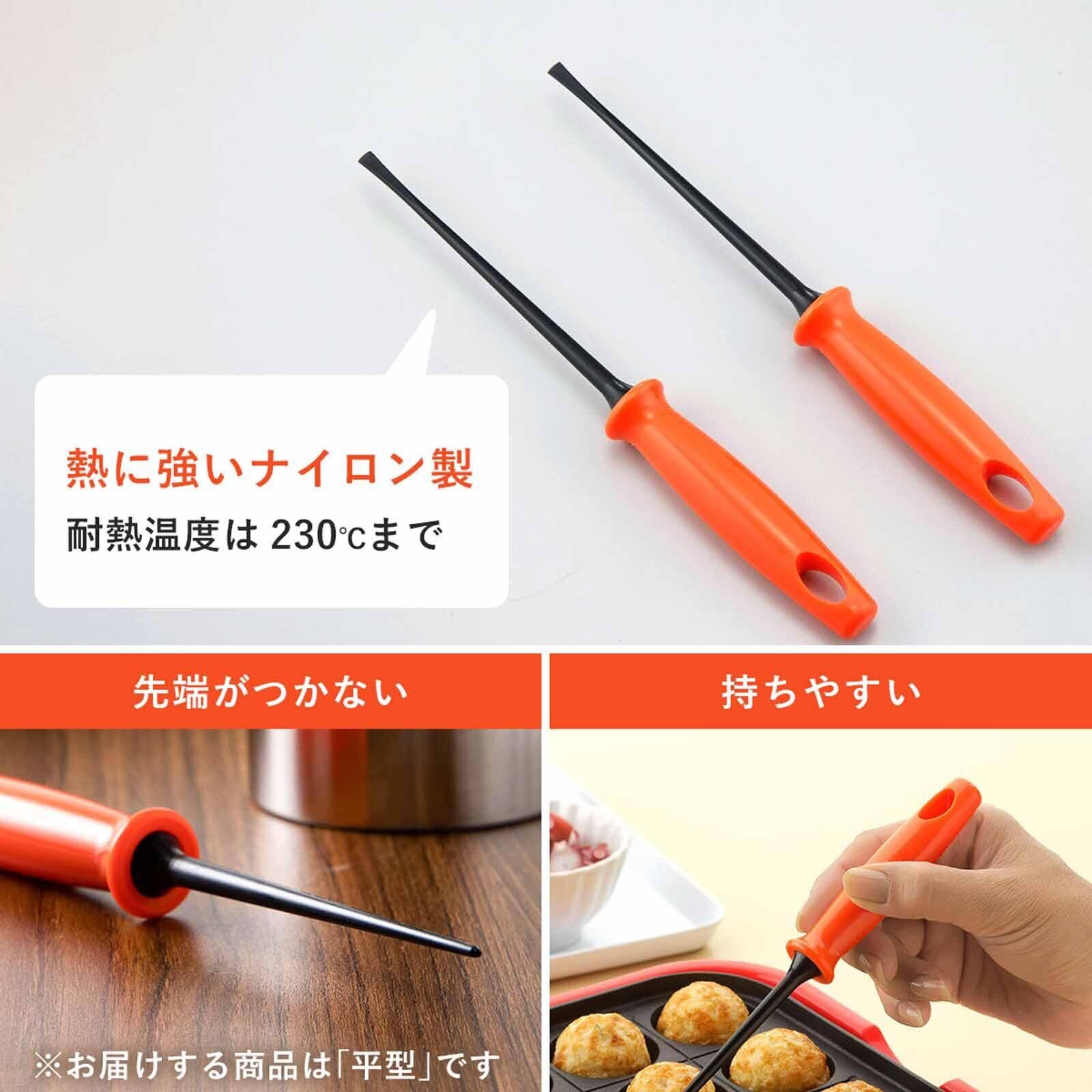 下村企販 ホットプレートをキズつけにくい たこピック 平型 2本組 【日本製】 食洗機対応 耐熱 たこ焼き 生地を集めやすい 平型の先端 樹脂製 オレンジ 燕三条 37275