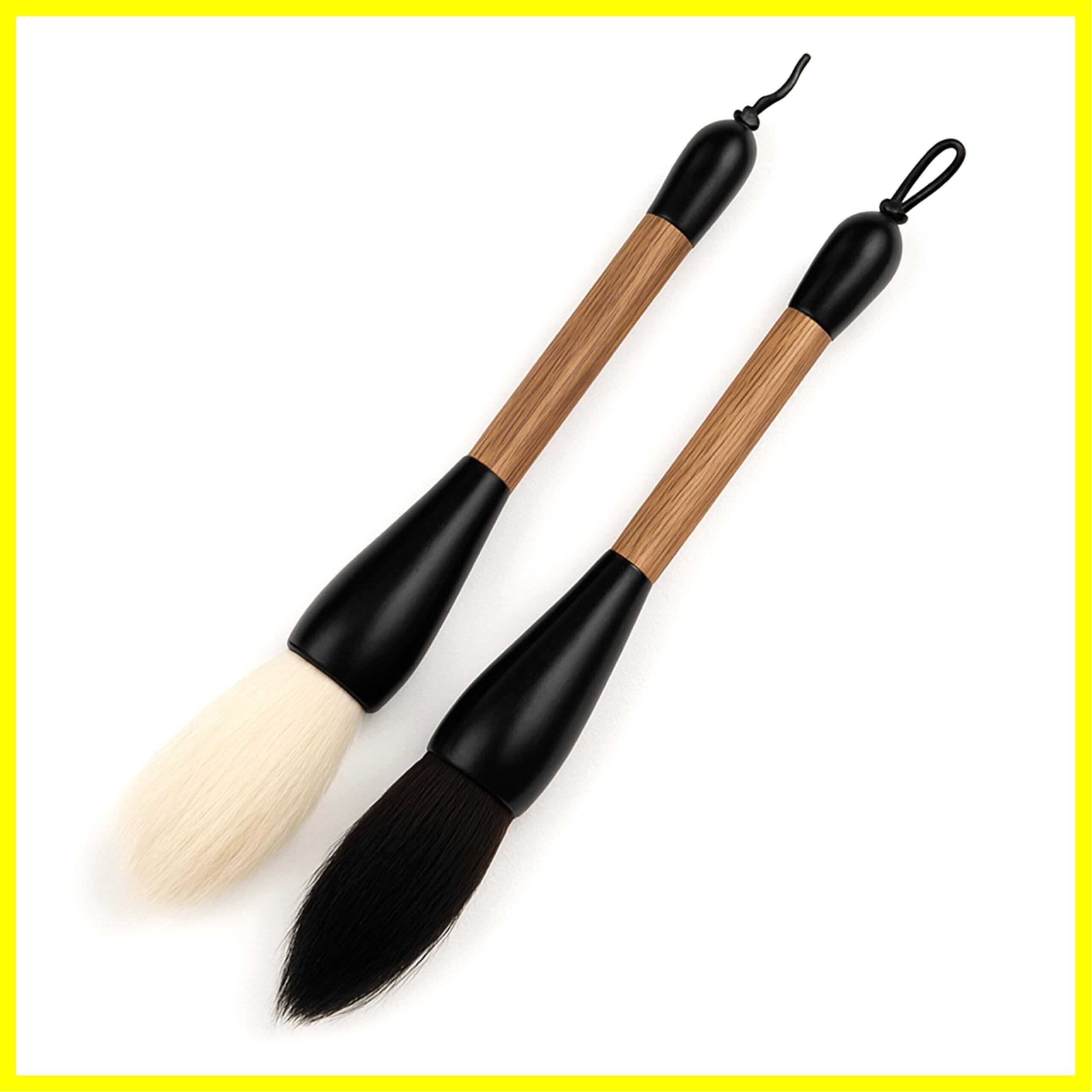 中国で古代より愛用されている提斗筆と呼ばれている太筆です。墨を良く吸収してカスレが少な目で、穂先も程よい柔らかさで使い勝手の良い羊毛と、力強い書体・鋭くパワフルな書体を生む程よい弾力性に富んだ熊毛の2本をご用意しました。