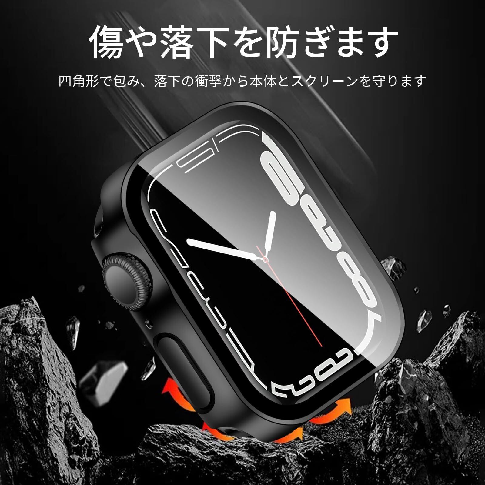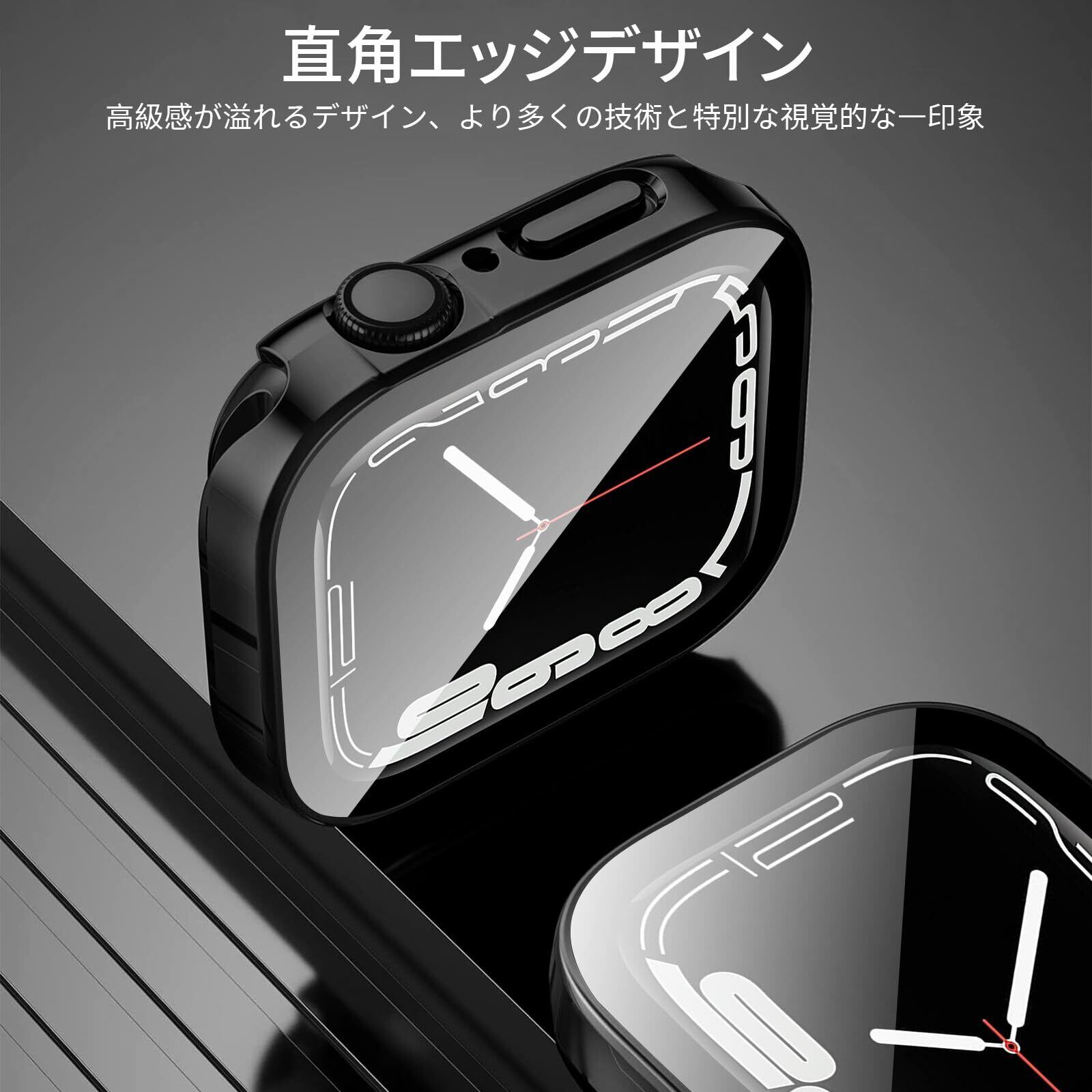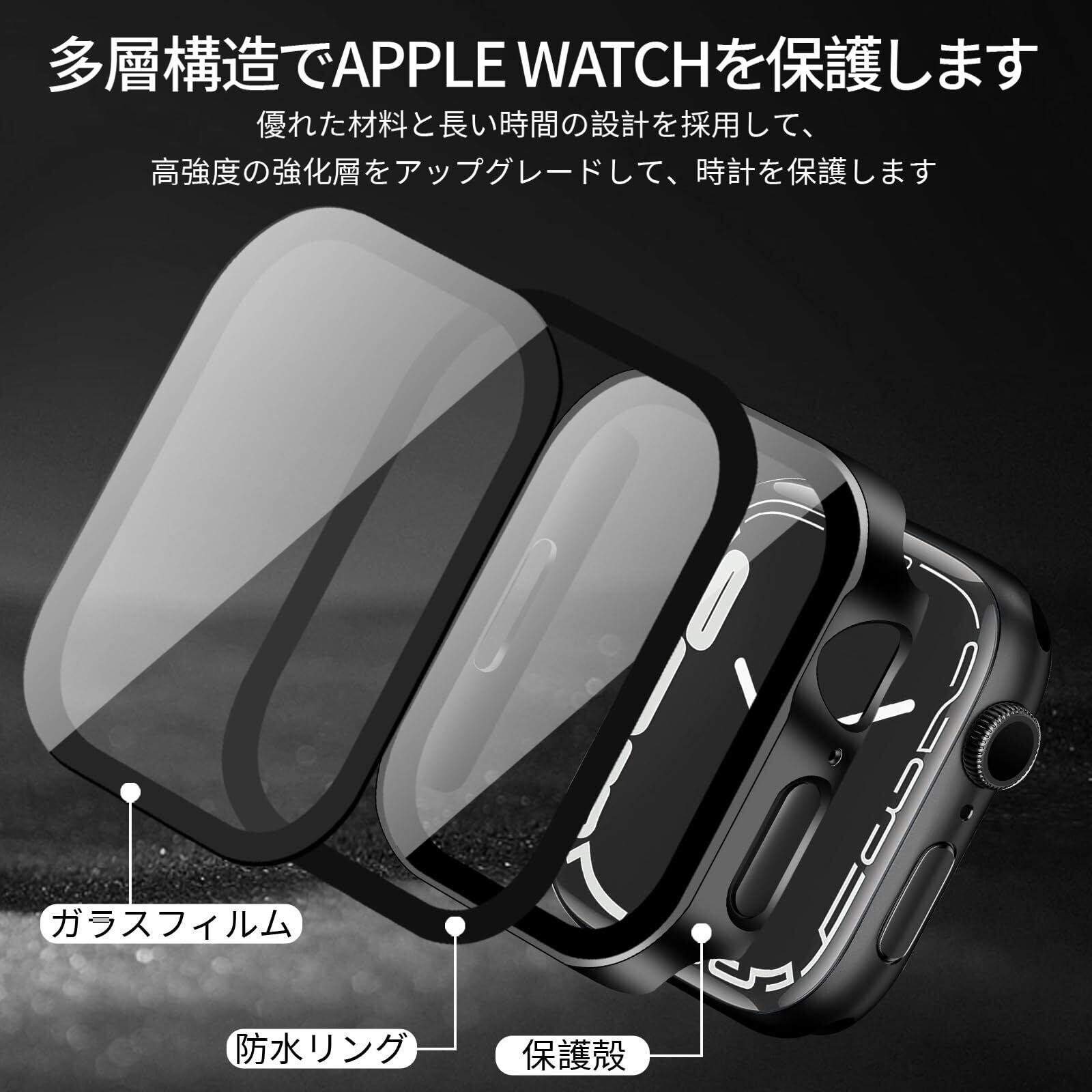 YUGYUG 対応 Apple Watch ケース Series SE3/SE2/SE/6/5/4 Apple Watch カバー PC素材 IP68 防水 3D直角エッジデザイン アップルウォッチ ケース ガラスフィルム 一体型 日本旭硝子材 二重構造 アップルウォッチ カバー 全面保護 強化ガラス キズ防止(40mm,ブラック)