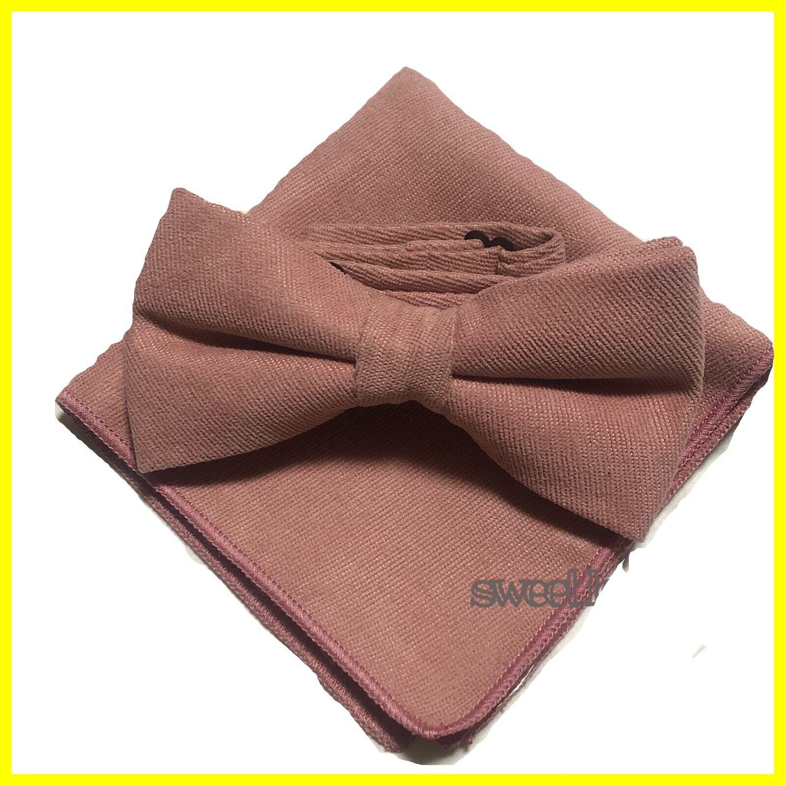 サーモンピンク【蝶ネクタイ&ポケットチーフ】2点セット メンズ ワンタッチ フォーマル無地 結婚式 二次会