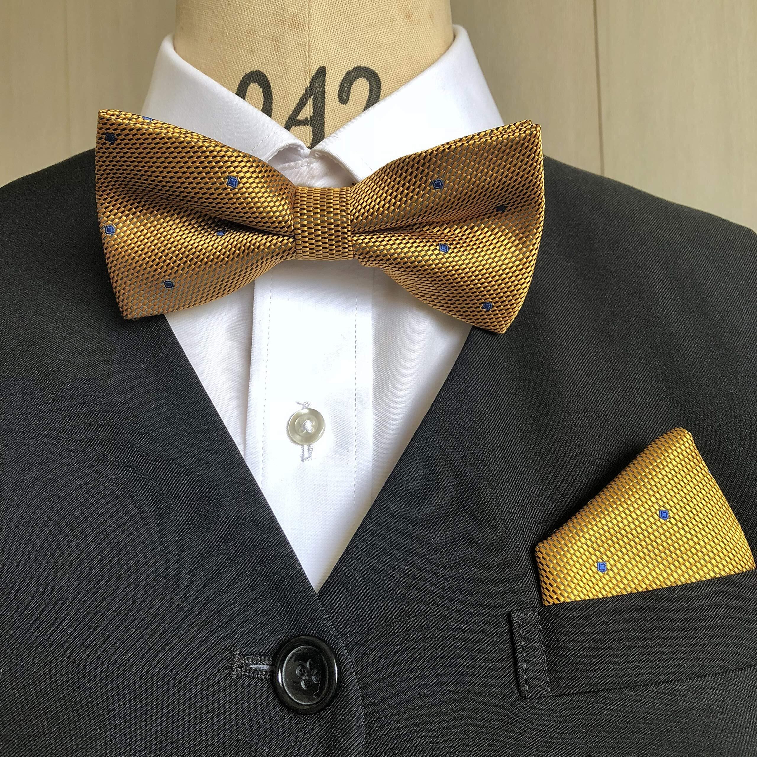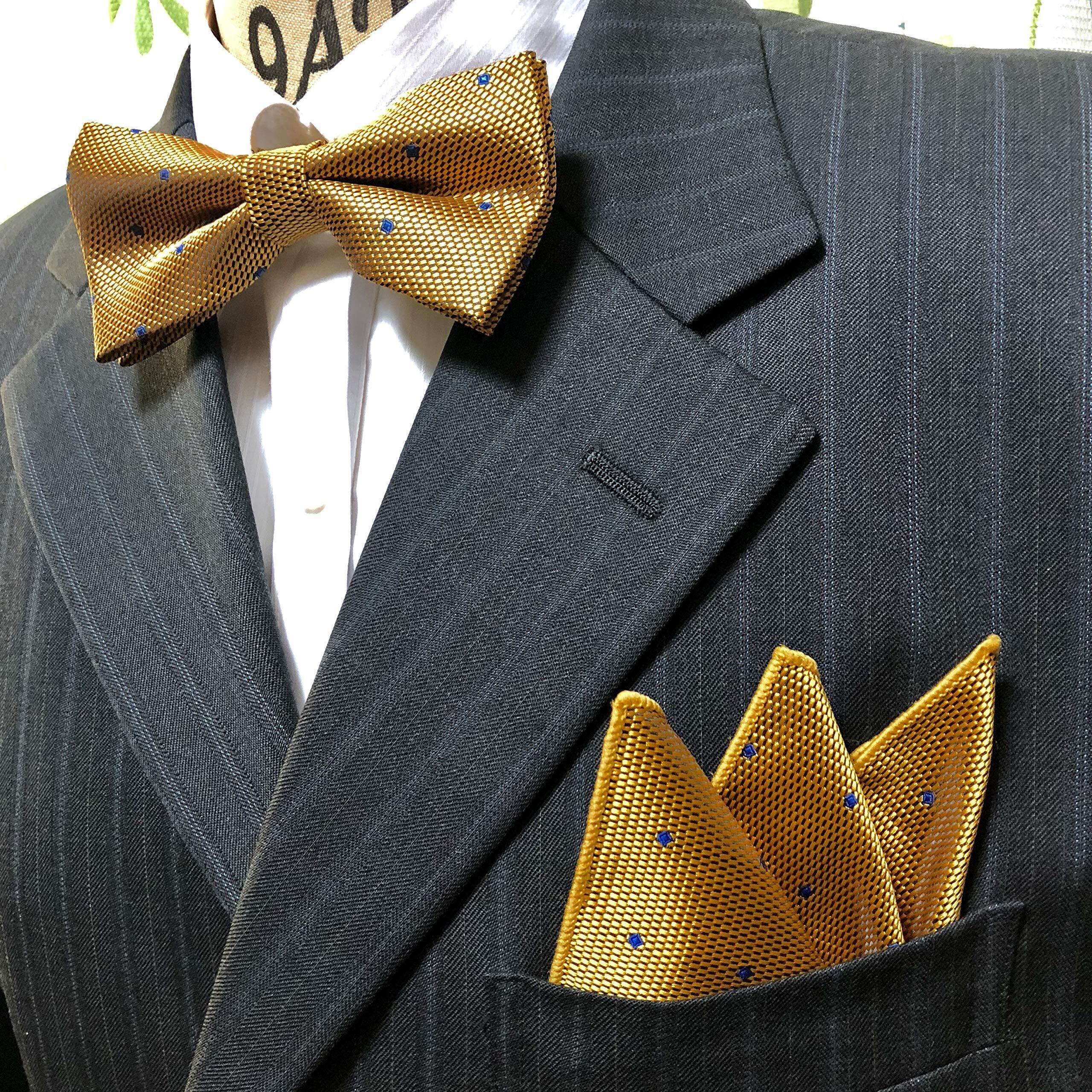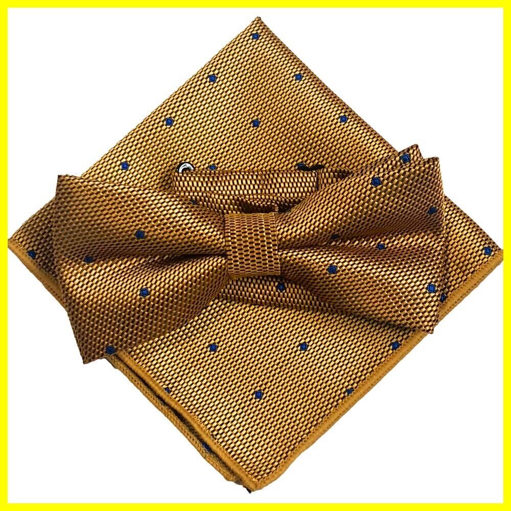 ドット(小)イエロー ゴールド【蝶ネクタイ&ポケットチーフ】2点セット リボン メンズ ワンタッチ セットアップ フォーマル 柄 結婚式 二次会
