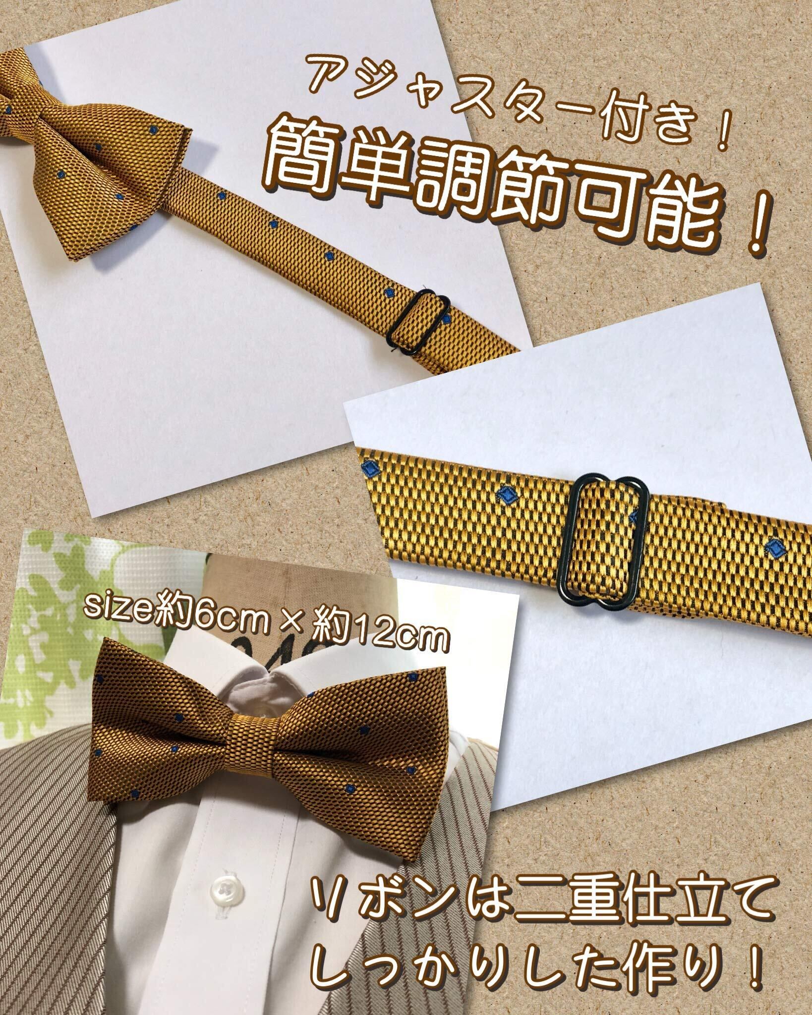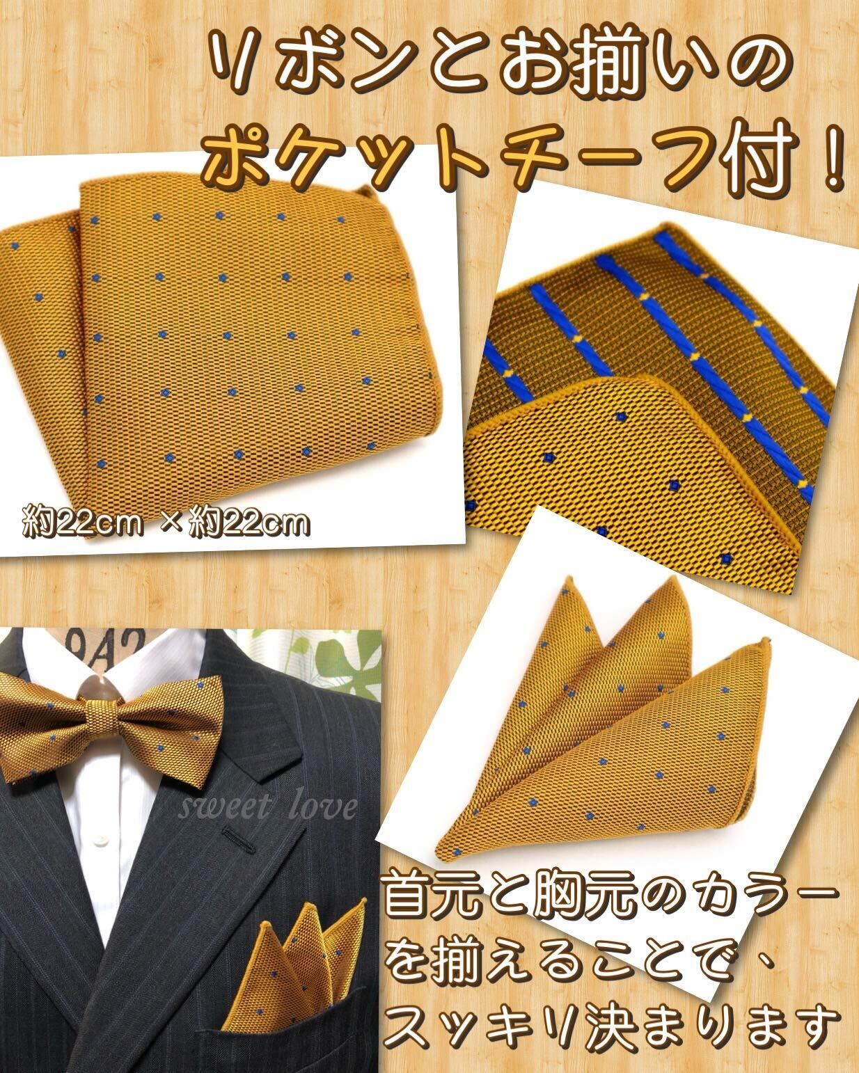 サイズ:蝶ネクタイ 約5.5~6cm×11~12cm /紐 首周り部分 約48cmまで対応 / ポケットチーフ約22cm×22cm