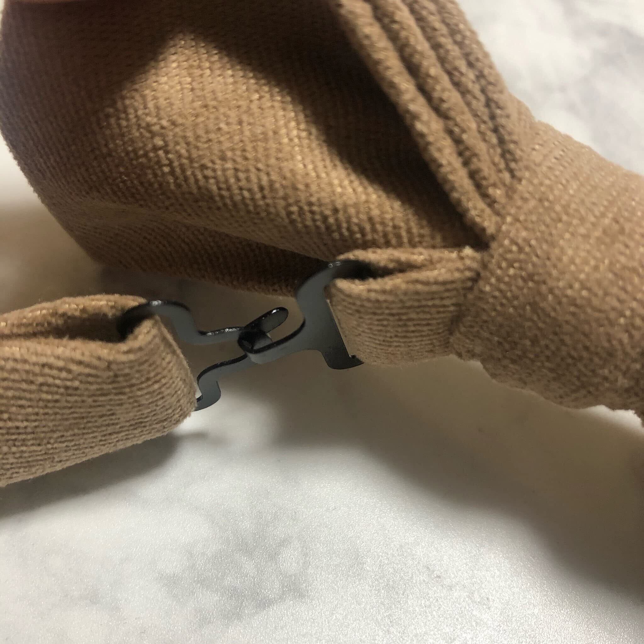 フックに掛けるだけの着脱簡単ワンタッチ!アジャスター付きでサイズ調整も可能!リボンの生地は2重仕立てのしっかりとした作りです。