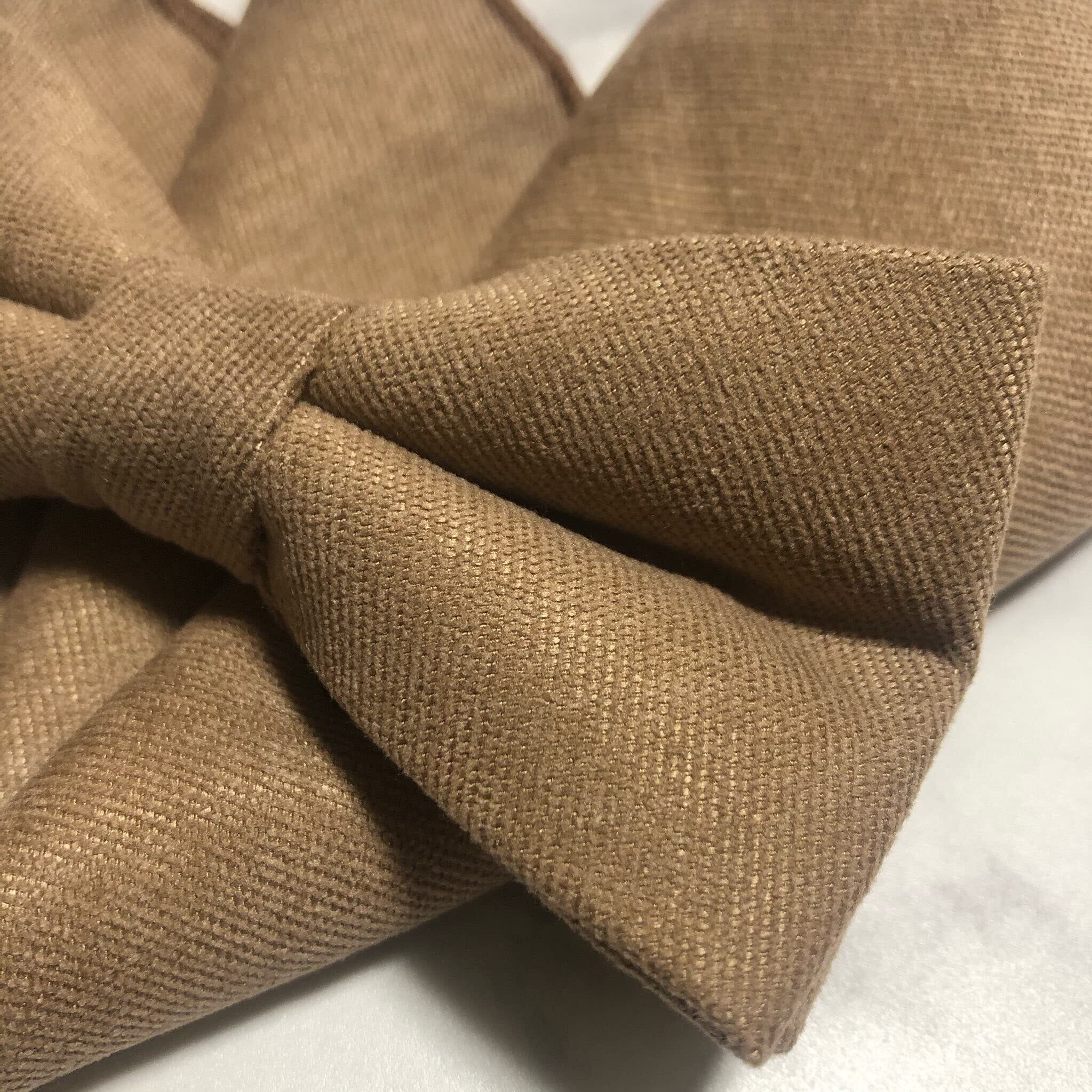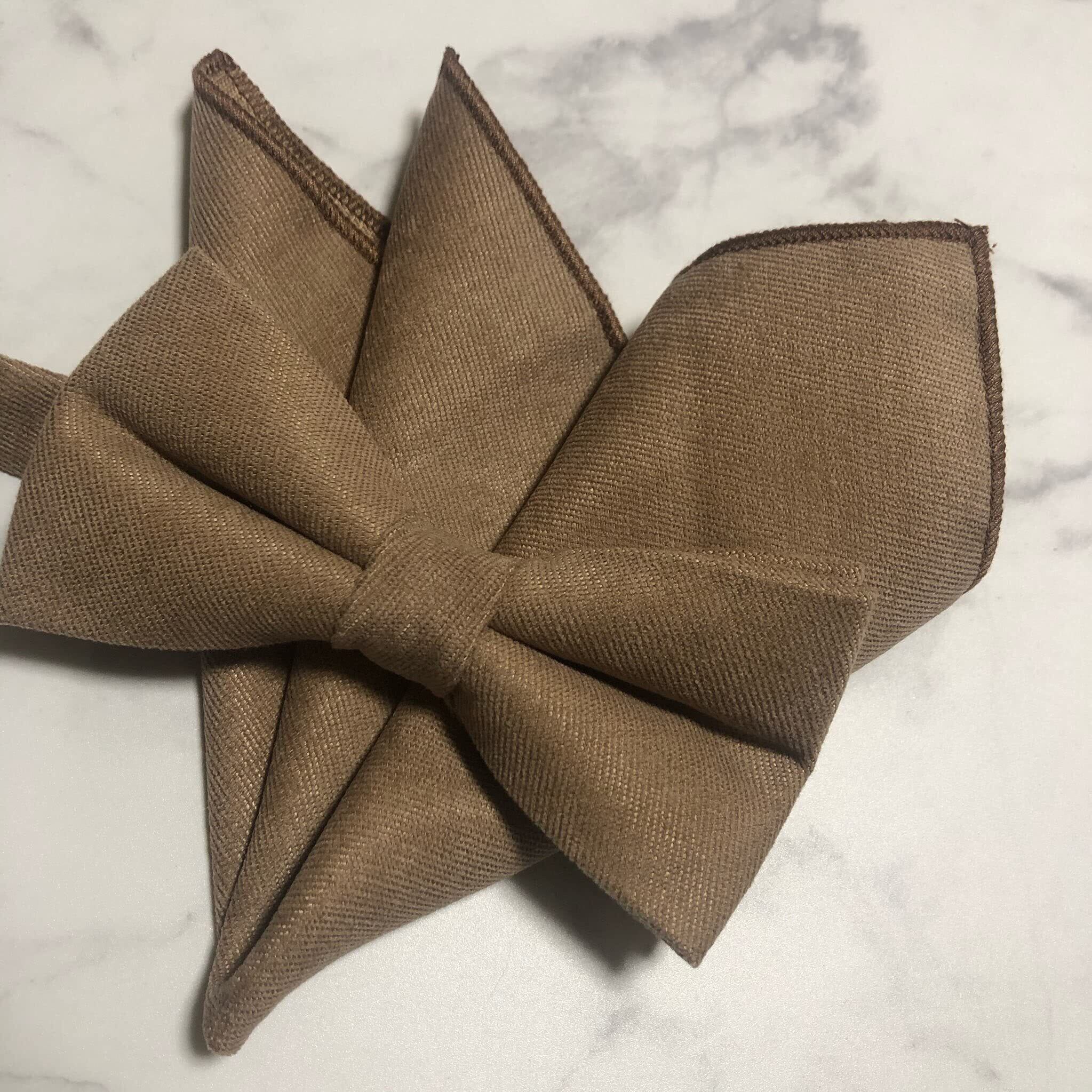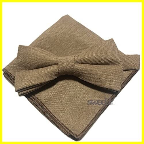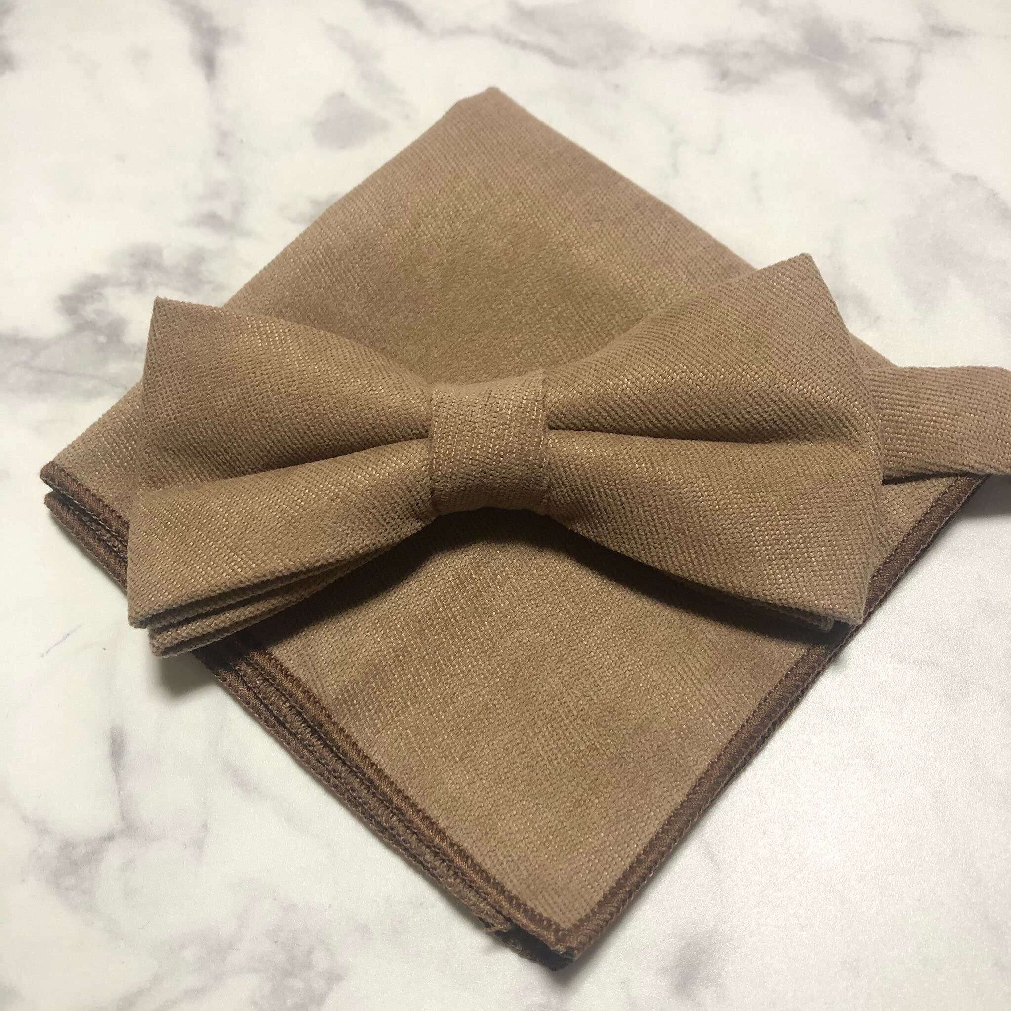 ベージュ【蝶ネクタイ&ポケットチーフ】2点セット 無地 メンズ ワンタッチ フォーマル 結婚式 二次会