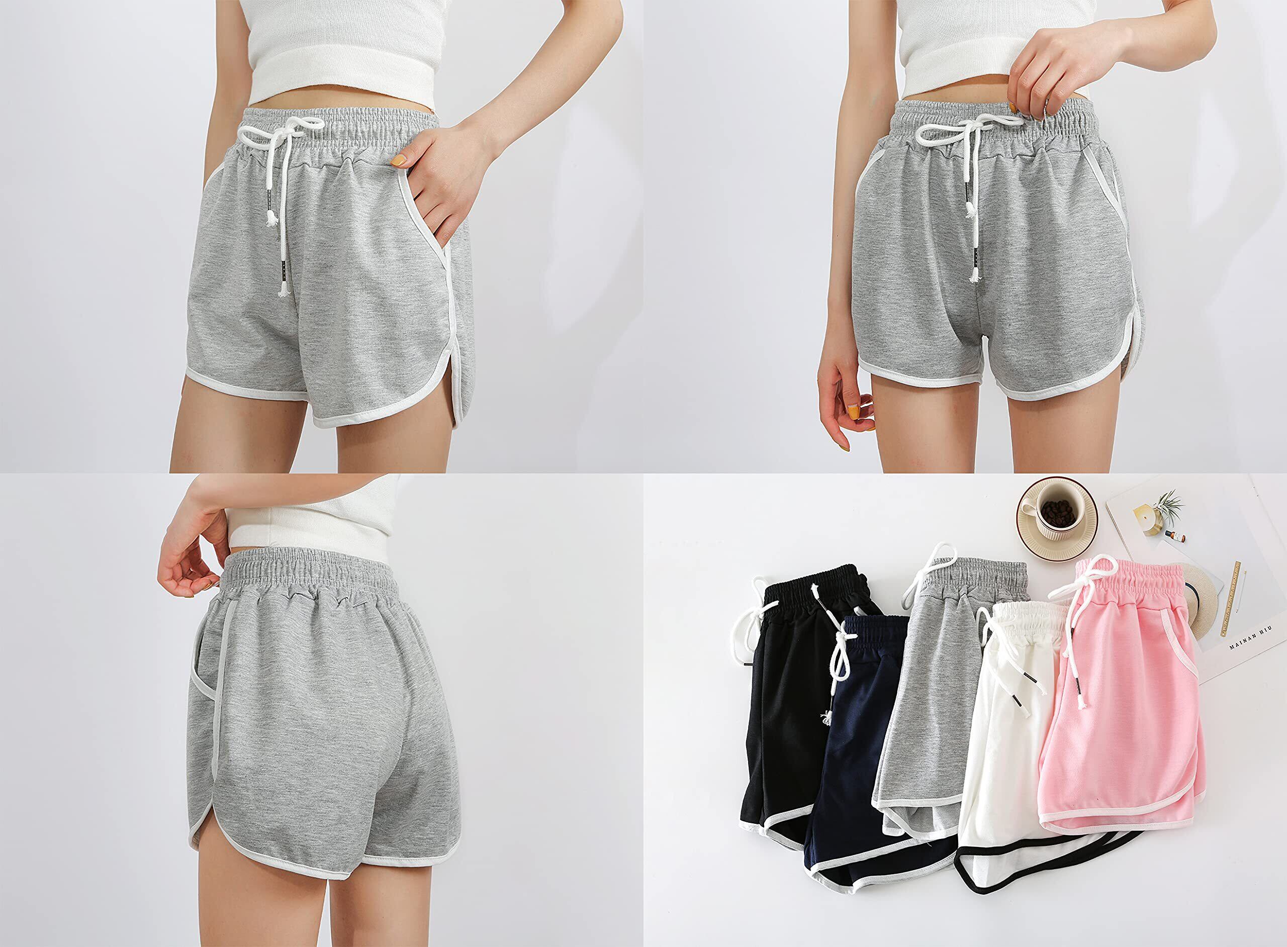 RAKUKOU レディース ショートパンツ 綿混 スポーツ 短パン 夏 ポケット付き カジュアルウエア 柔らかい 通気性 伸縮性 吸汗 速乾 ヨガ ランニング