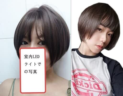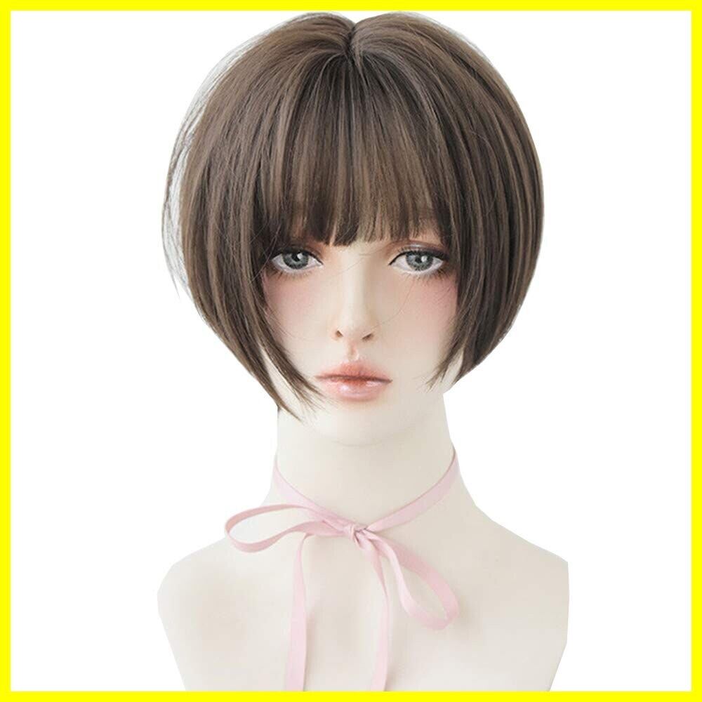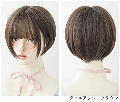 フルウィッグ ショート 前髪 3D グラデーション ヘアアレンジ 襟足 ボリューム カール ストレート つむじ 耐熱 自然 ボリューム 抜け感 (クールアッシュブラウン)