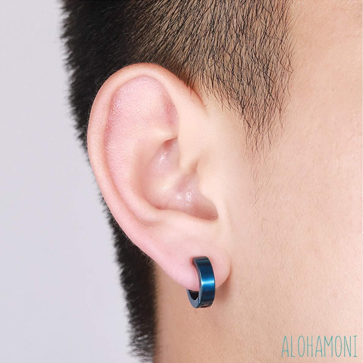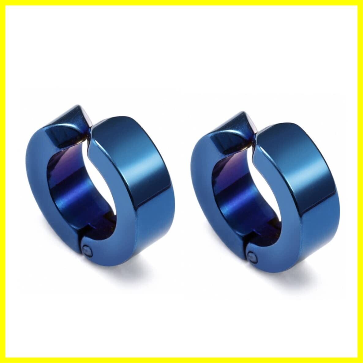 ALOHAMONI (アロハモニ) フェイクピアス イヤーカフ イヤリング ブラック シルバー 黒 銀 両耳 2個 セット フープ リング ノンホール フェイク ピアス レディース メンズ ユニセックス 男女兼用 バネ式 スプリング 挟むだけ 簡単 装着 (ブルー)