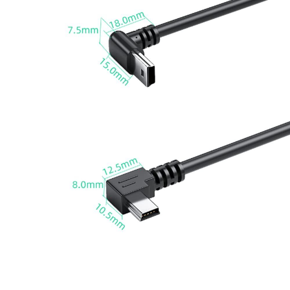 USB 2.0 ミニケーブル USB(A)オス-USB(miniB)オス L型 上下左右90°方向変換ケーブル 金メッキ付き 高速480Mbpsのデータ転送同期リード (0.3m左L)