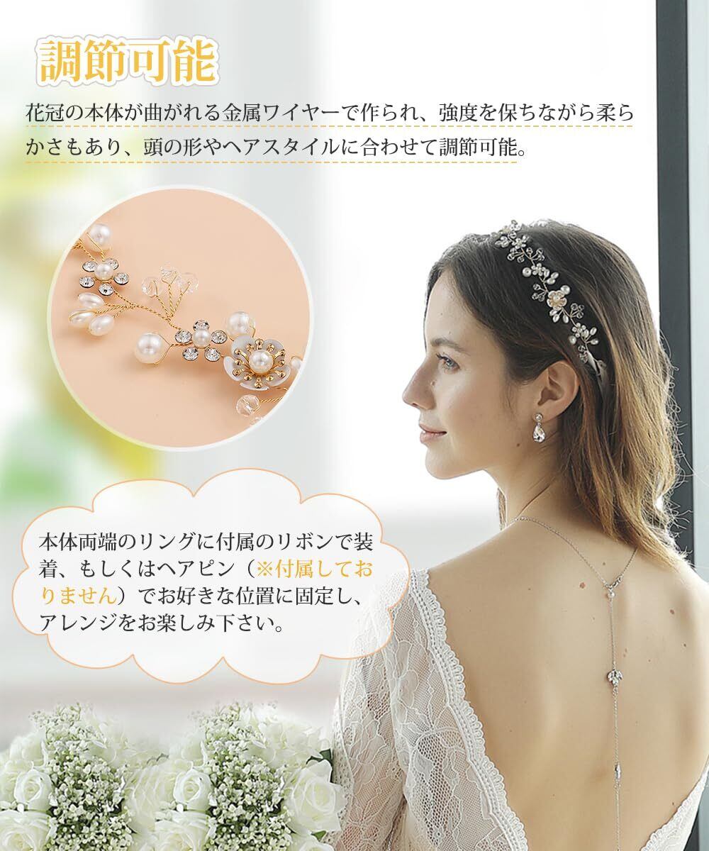 調節可能:花冠の本体が曲がれる金属ワイヤーで作られ、強度を保ちながら柔らかさもあり、頭の形やヘアスタイルに合わせて調節可能です。