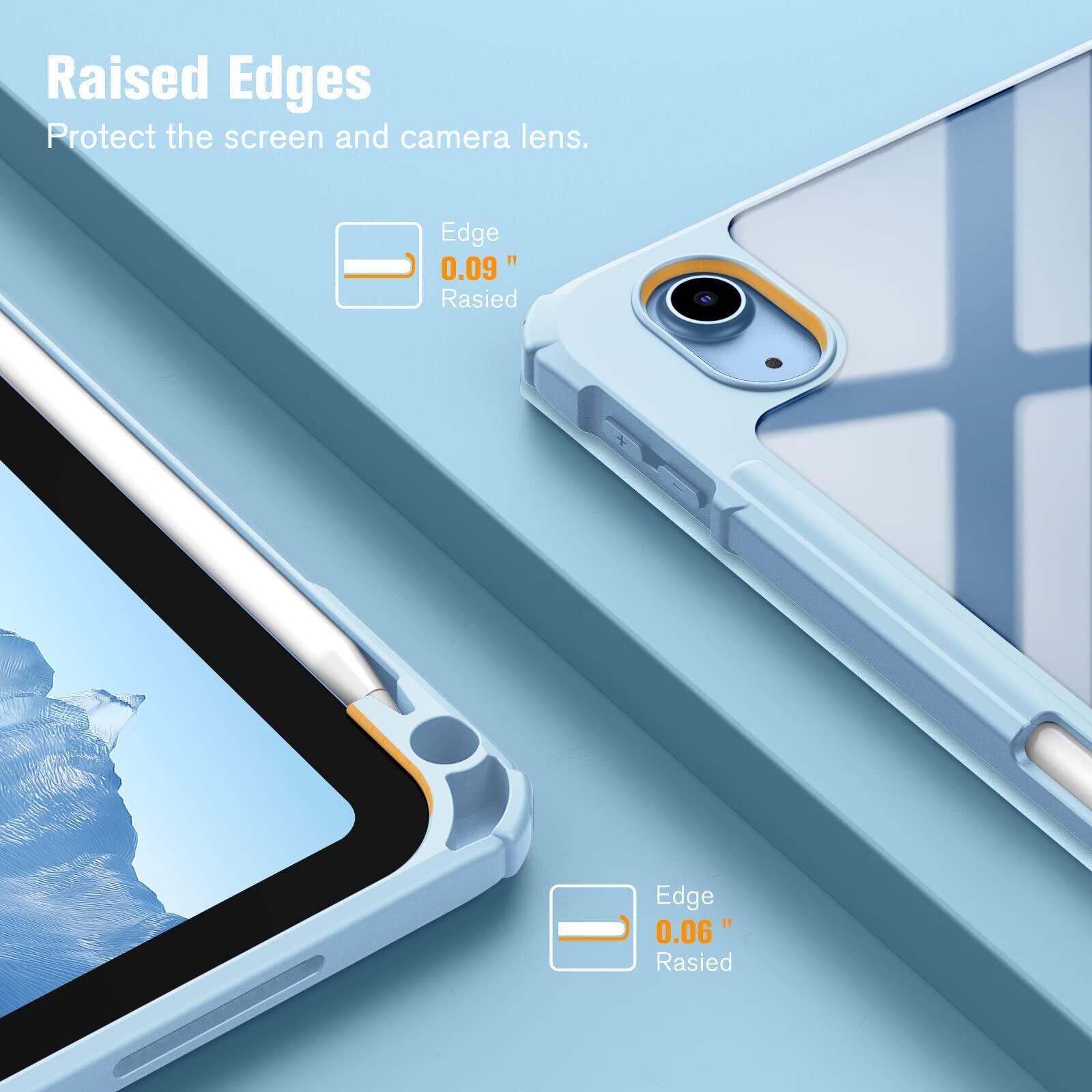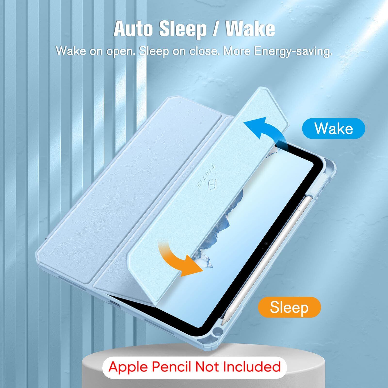 Fintie iPad 第11世代 (A16、2025) / 第10世代 (2022) ケース 11/10.9インチ 透明バックカバー Apple Pencil 収納可能 三つ折スタンド スリープ機能 軽量 薄型 傷つけ防止 PU合成レザー TPU(スカイブルー)