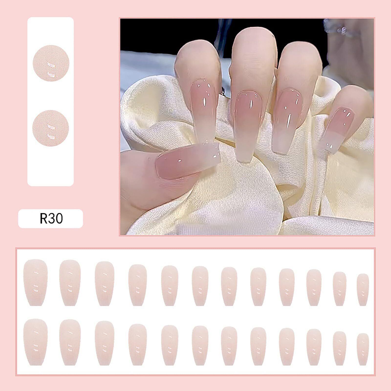 Lwenjing ネイルチップ 付け爪 チップ 3D ネイルチップ 手作りネイルチップ 結婚式ネイルチップ かわいい 短め 長い ネイルチップ 人気 和風 花嫁ネイル 光沢 つけ爪 24枚入 (R30)