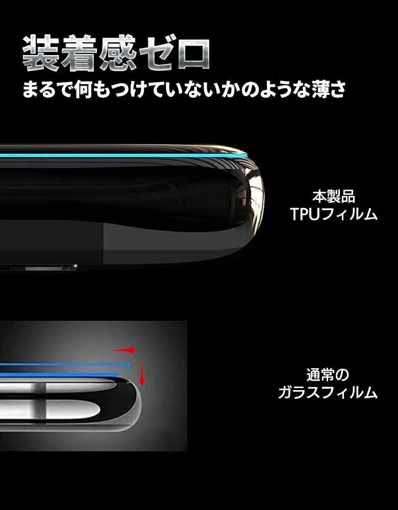 [材質] 新素材のTPU ウレタンを使用。極薄0.1mmなのでまるで貼っていないかのようにスマート。側面から見ても貼っていることがほとんど分からず、ケースにも干渉しません。一般的なガラスフィルムは横からの衝撃に弱いのに対し、当TPUフィルムはフチ面からの衝撃も緩和します。