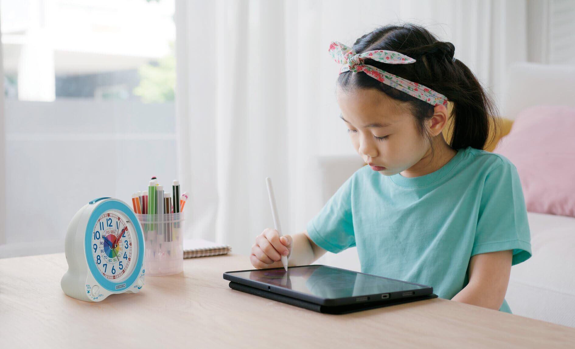 セイコークロック 目覚まし時計 置き時計 知育 アナログ 薄青 134×130×85mm BC420L