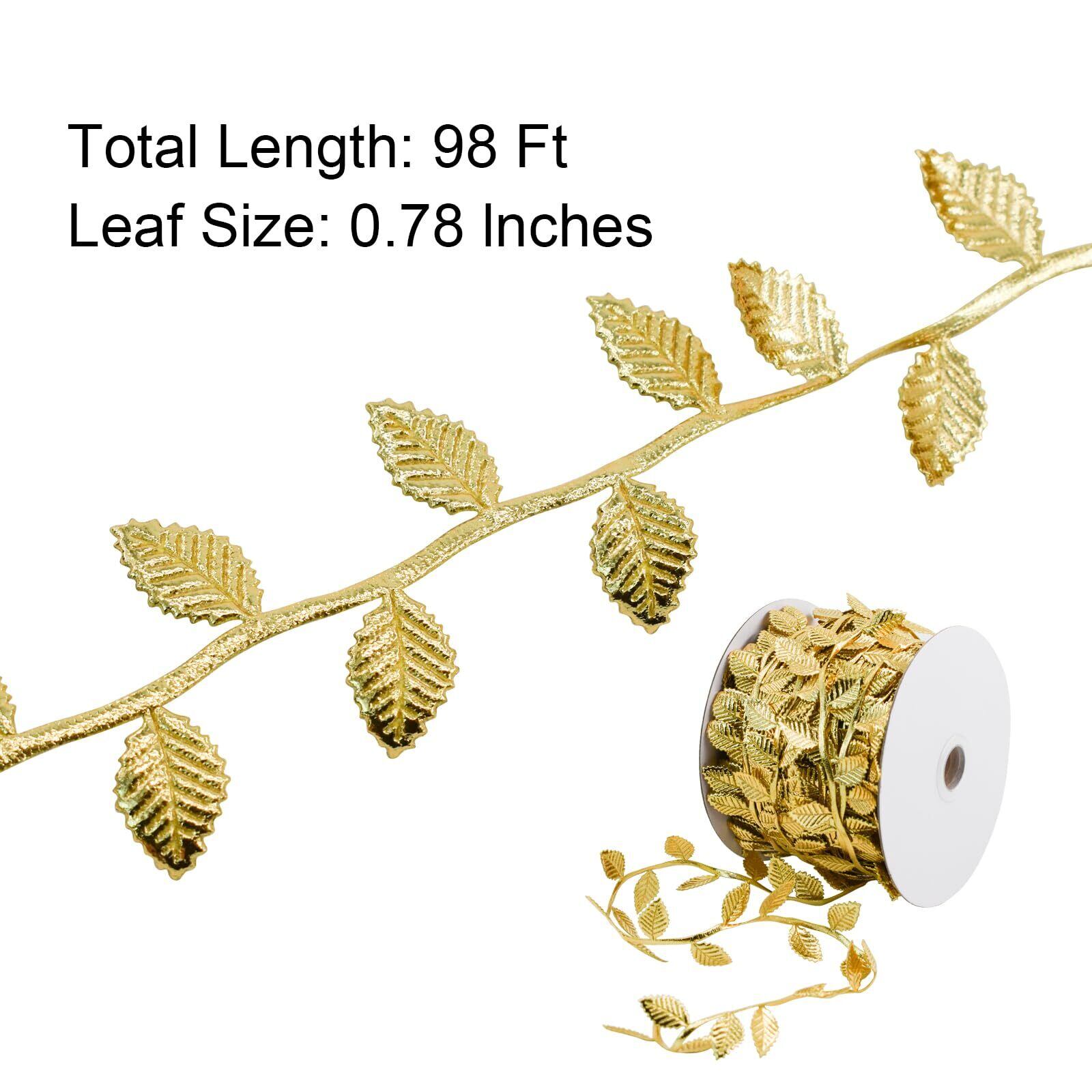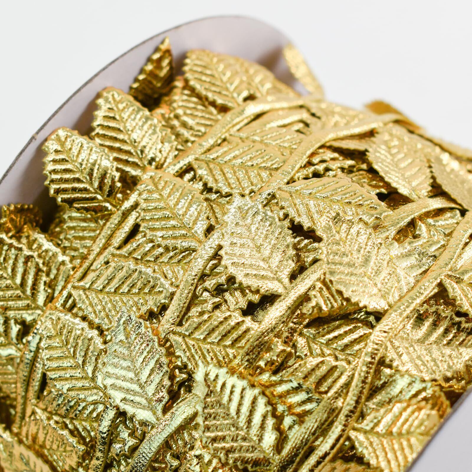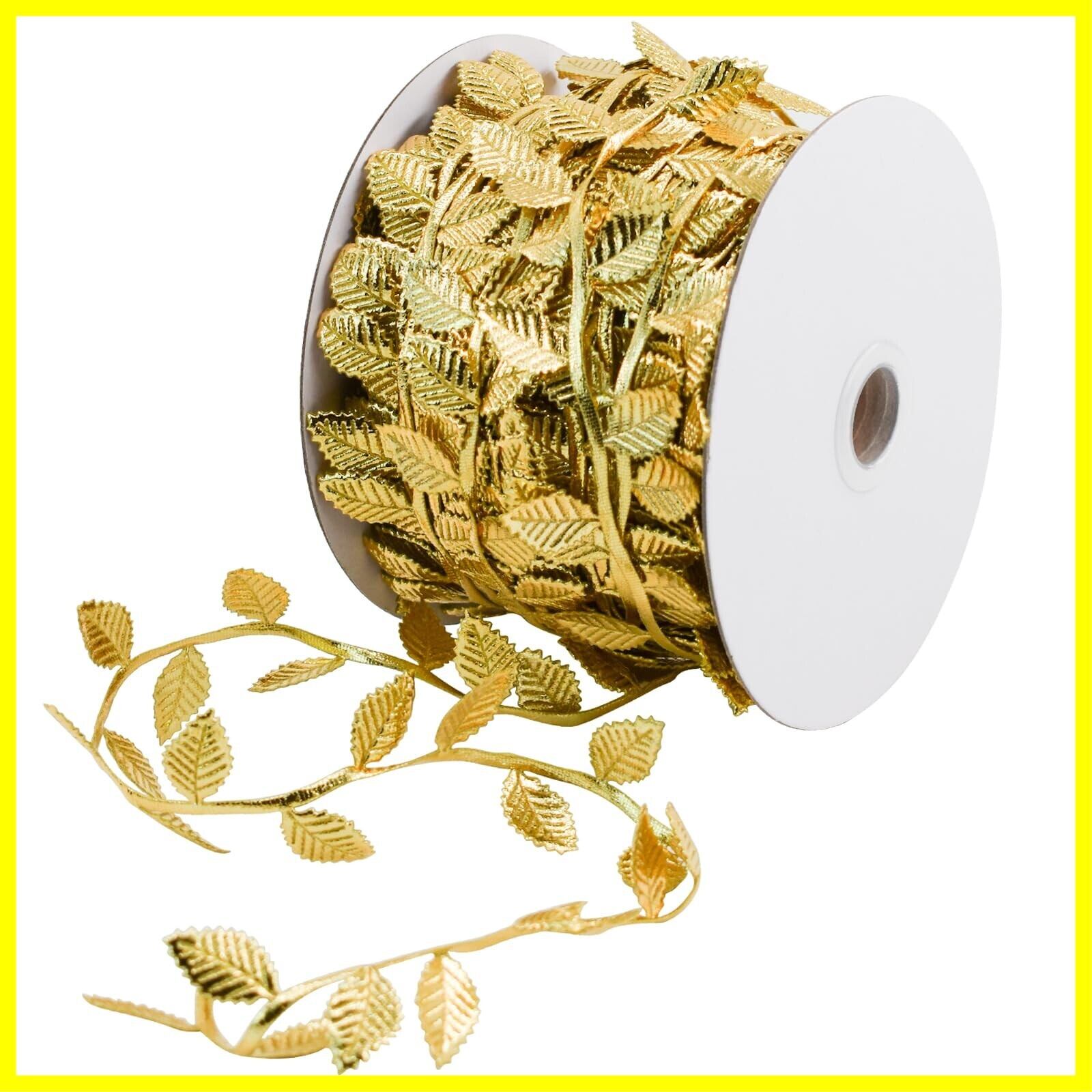Bacucine 葉っぱ リボン リーフリボン グリーン リボントリム テトロン クリスマス つるリボン 飾り ウェディング 結婚式 花輪作り ギフト包装 パーティー装飾 プレゼント ハンドメイド ホーム装飾 デコレーション インテリア (ゴールド)