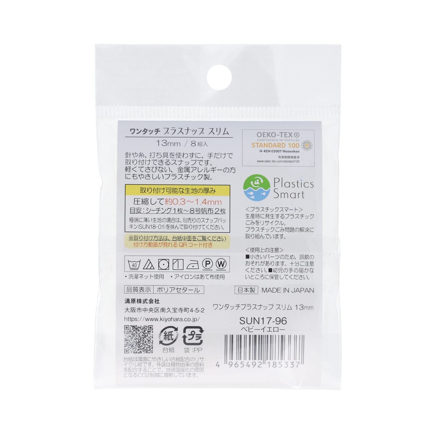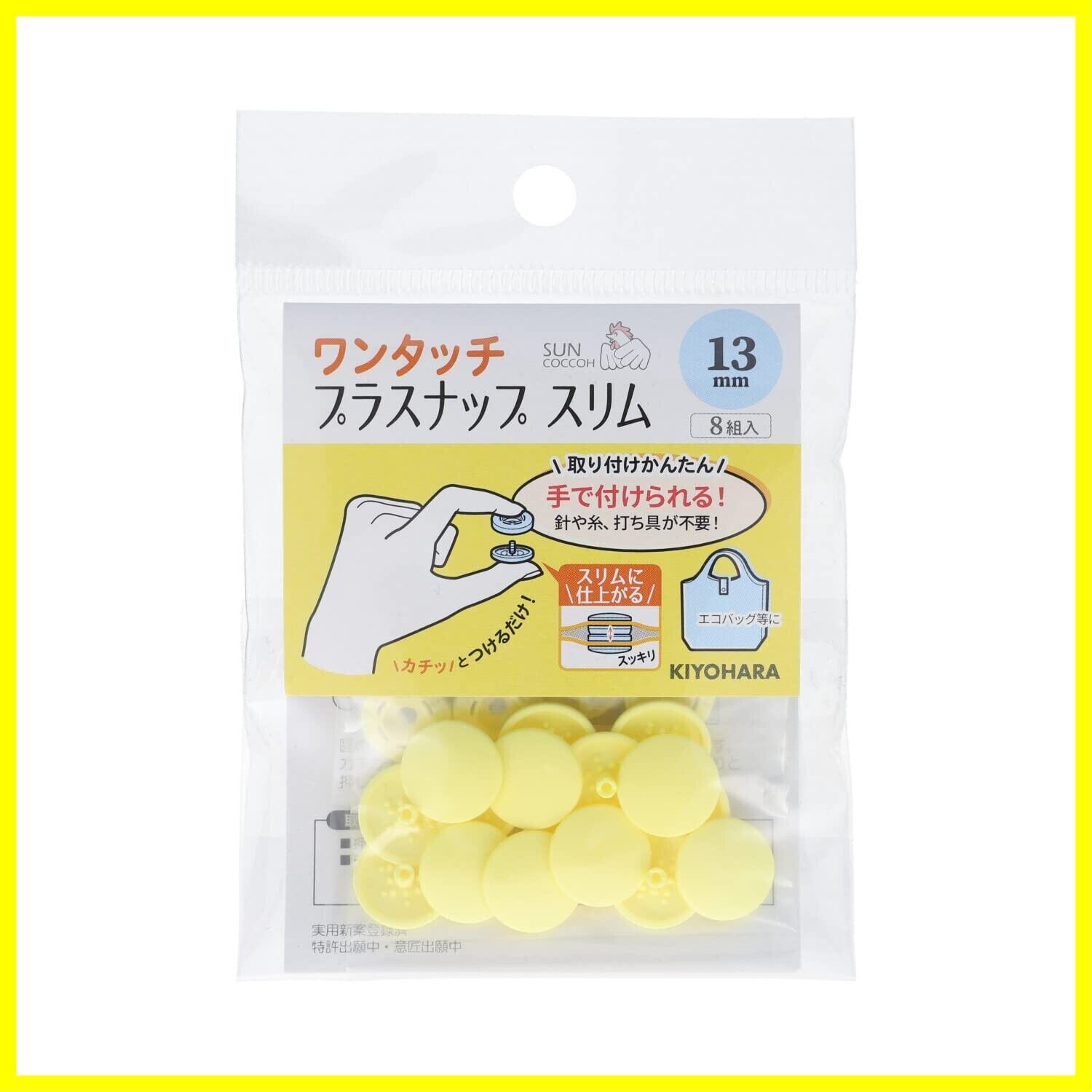 KIYOHARA サンコッコー ワンタッチプラスナップ スリム 8組入 直径13mm ベビーイエロー SUN17-96