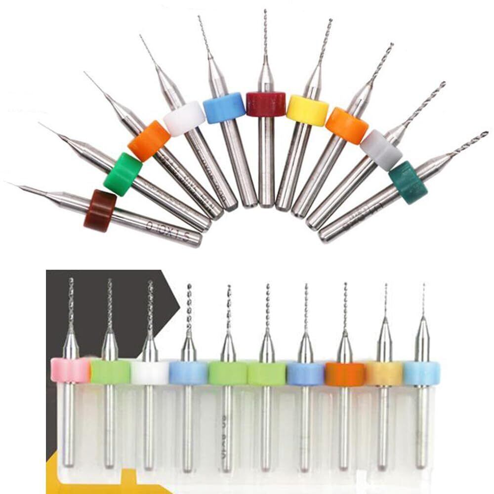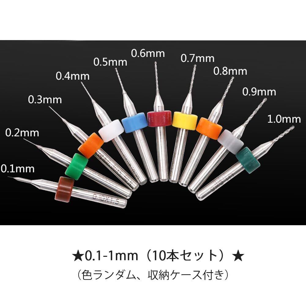 セット内容:極細ドリルビット10本セット(収納ボックス付き)、サイズ:0.3-1.2mm(0.1、0.2、0.3、0.4、0.5、0.6、0.7、0.8、0.9、1.0mm)。カラー:カラフル(色ランダム)。