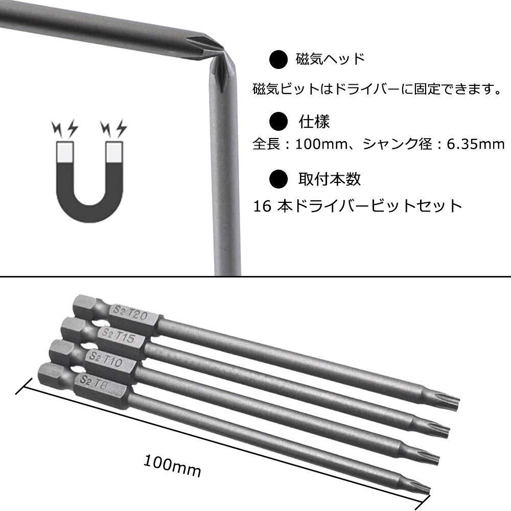 Bestgle6.35 ビットドライバービット 片頭ビット16本組 六角ビット100mm 精密ビット六角ビット マイナスビット 十字軸 六角ビットドライバーセット中空トルクス頭 磁気クロスヘッドドライバービットドリルビット工具 磁気六角ビットセット 電動ドライバービット