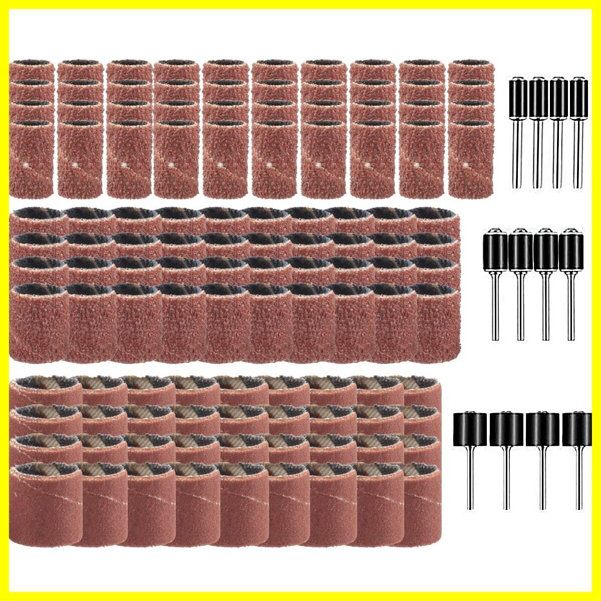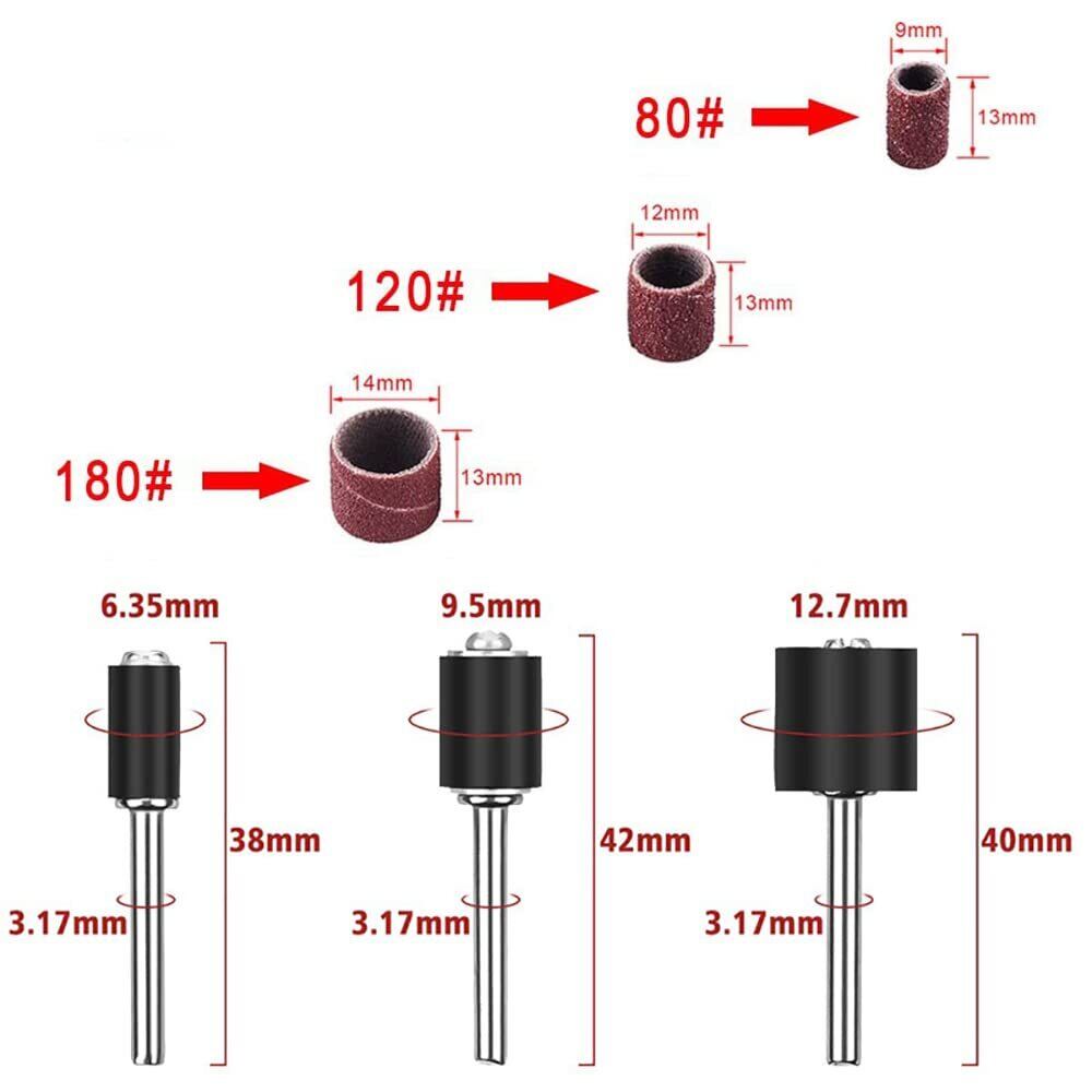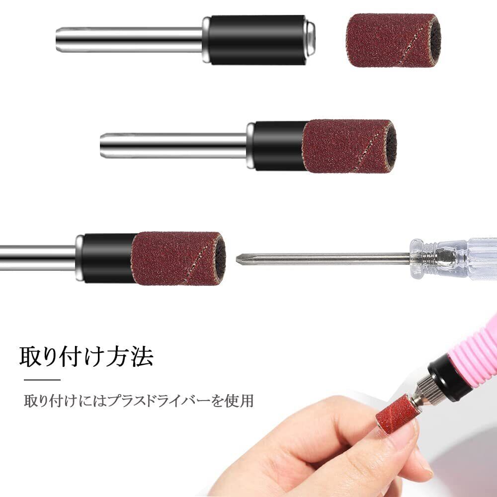 Wolfride 132個セット サンディングバンド ルーターヤスリ 電動ヤスリ 電動ルーター ドリルプレス用 ネイルオフ ネイルビット 180# 120# 80# 研削 研磨工具 木工 ロータリーツール DIY工具 12本3.17mmシャフト付