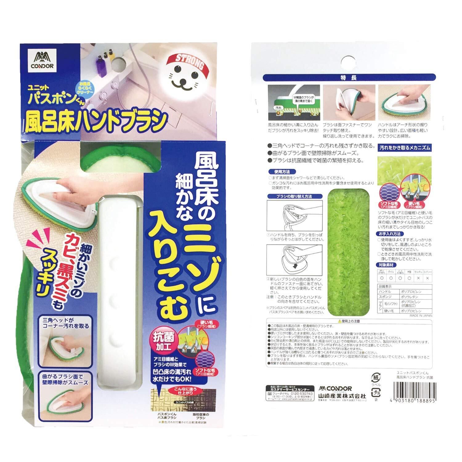 山崎産業(Yamazaki Sangyo) 浴室掃除用ブラシ グリーン 幅13.5×奥行18cm お風呂掃除 床 ブラシ ハンド バスボンくん 抗菌 日本製 188895