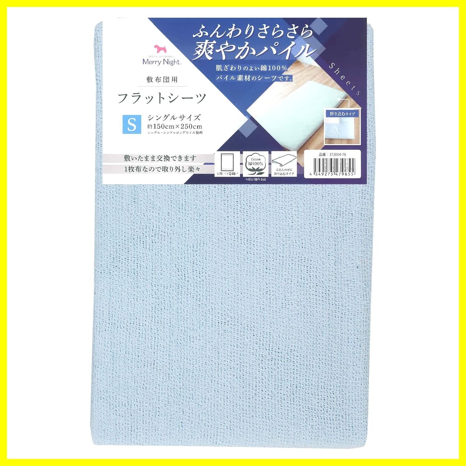 メリーナイト シーツ フラットシーツ パイル生地 ブルー 敷布団用 シングル 約150×250cm 綿100% ふんわりさらさら肌ざわり 洗える オールシーズン 372004-76