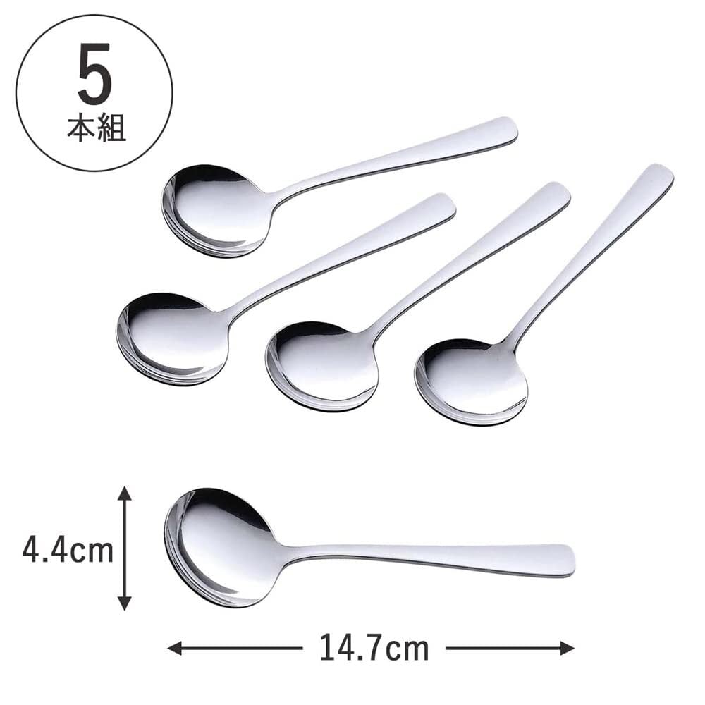 下村企販 スプーン スープスプーン 5本組 【日本製】 食洗機対応 指紋が目立ちにくい すくいやすい シンプルなデザイン 全長14.7cm カップスープ ブイヨンスプーン ステンレス TSUBAME 燕三条 40249
