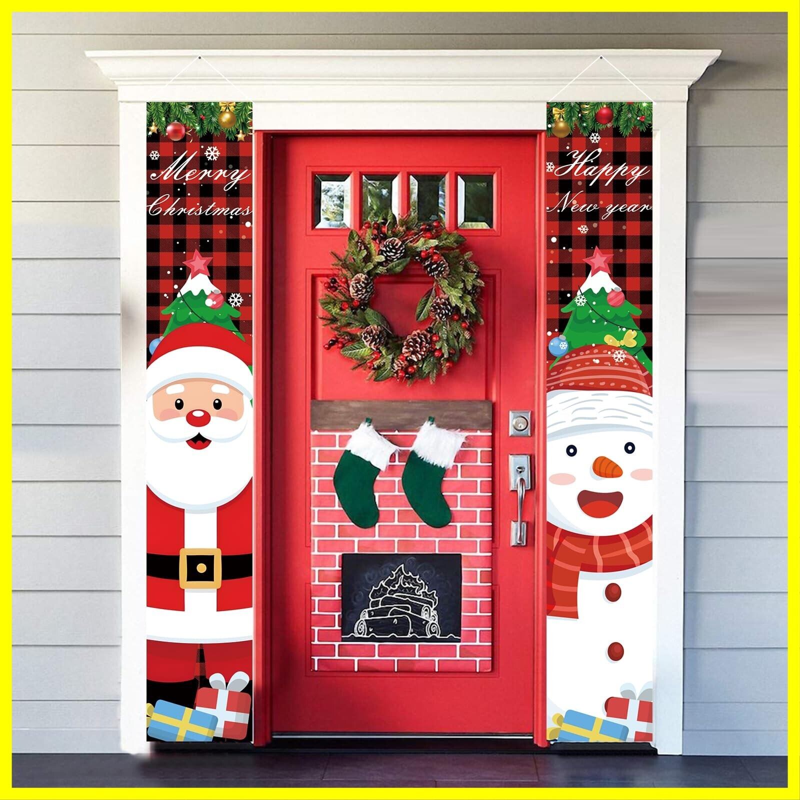 クリスマス玄関飾り:かわいいサンタさんや雪だるまがプリントされ、クリスマスをテーマにした玄関飾りです。壁に掛けるだけで、ぱっとクリスマスの雰囲気を素敵に演出してくれます。目を引くクリスマスポスターを飾り、楽しいクリスマスと新年を迎えましょう!