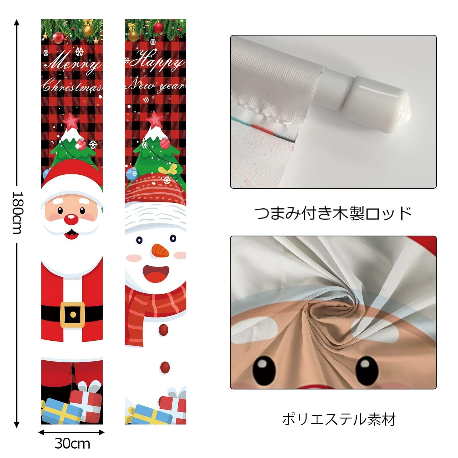 Paready クリスマス 玄関飾り クリスマス 飾り タペストリー 取り付け具 付き ドアバナー Merry Christmas ポスター 長尺 玄関 装飾 壁掛け カーテン フラッグ 吊り下げ 屋内 屋外 メリークリスマス サンタ 玄関デコレーション 雪だるま サンタ 180*30cm