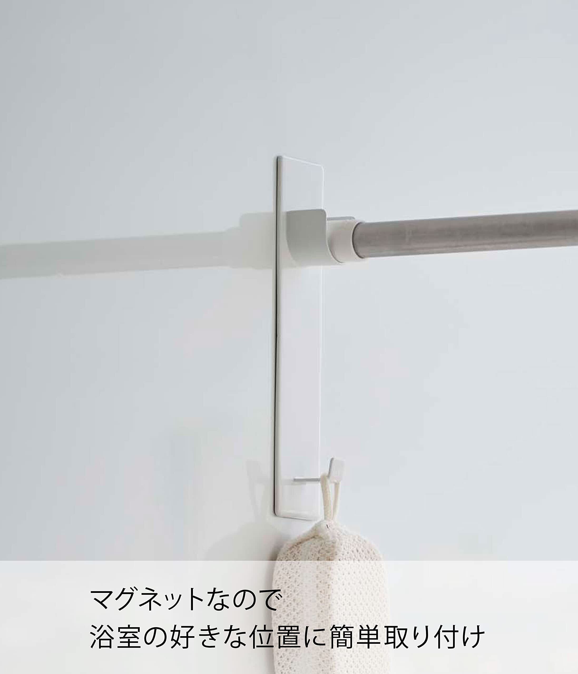 マグネットが付く浴室壁面に簡単取り付けの物干し竿ホルダー。