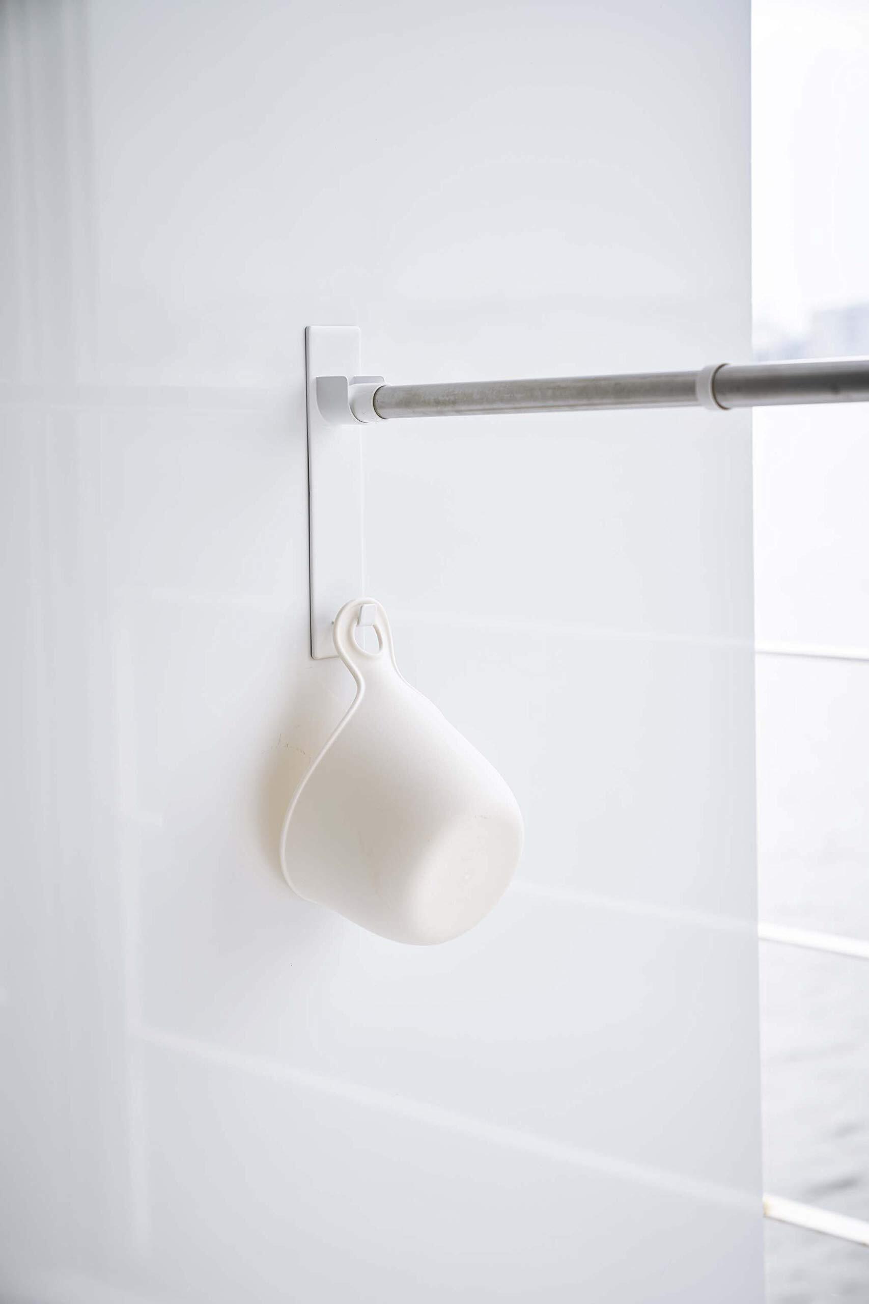 浴室の好な位置に簡単取り付けできる便利なフック付きの物干し竿ホルダー。