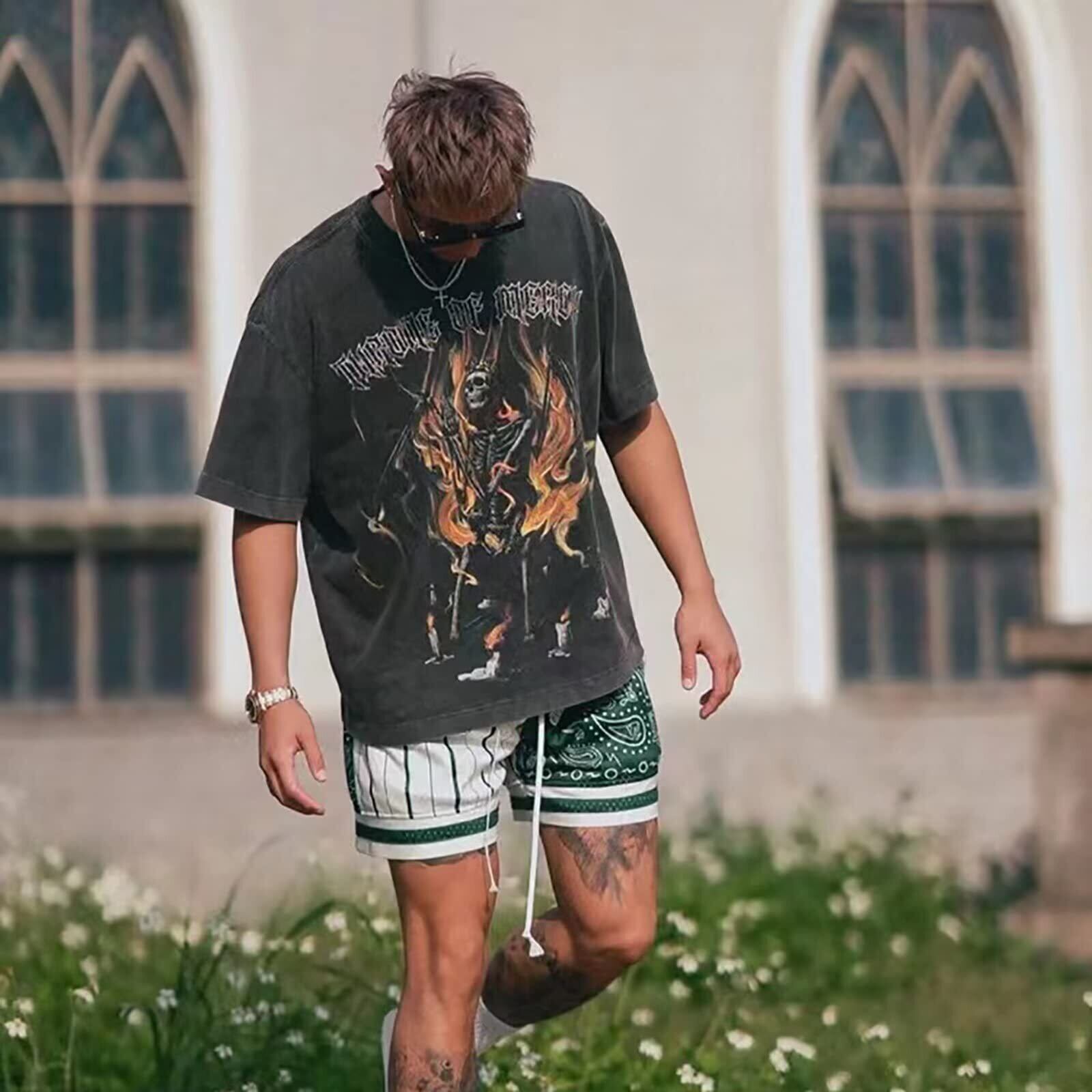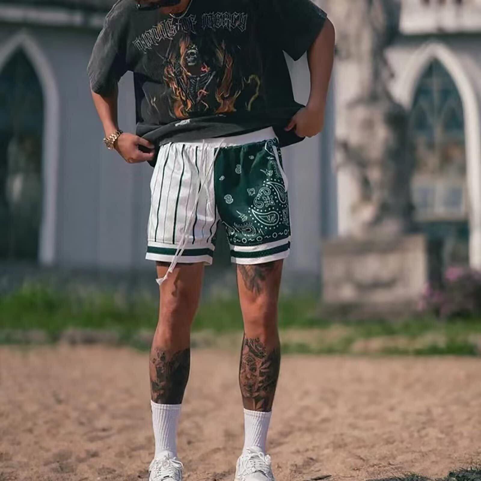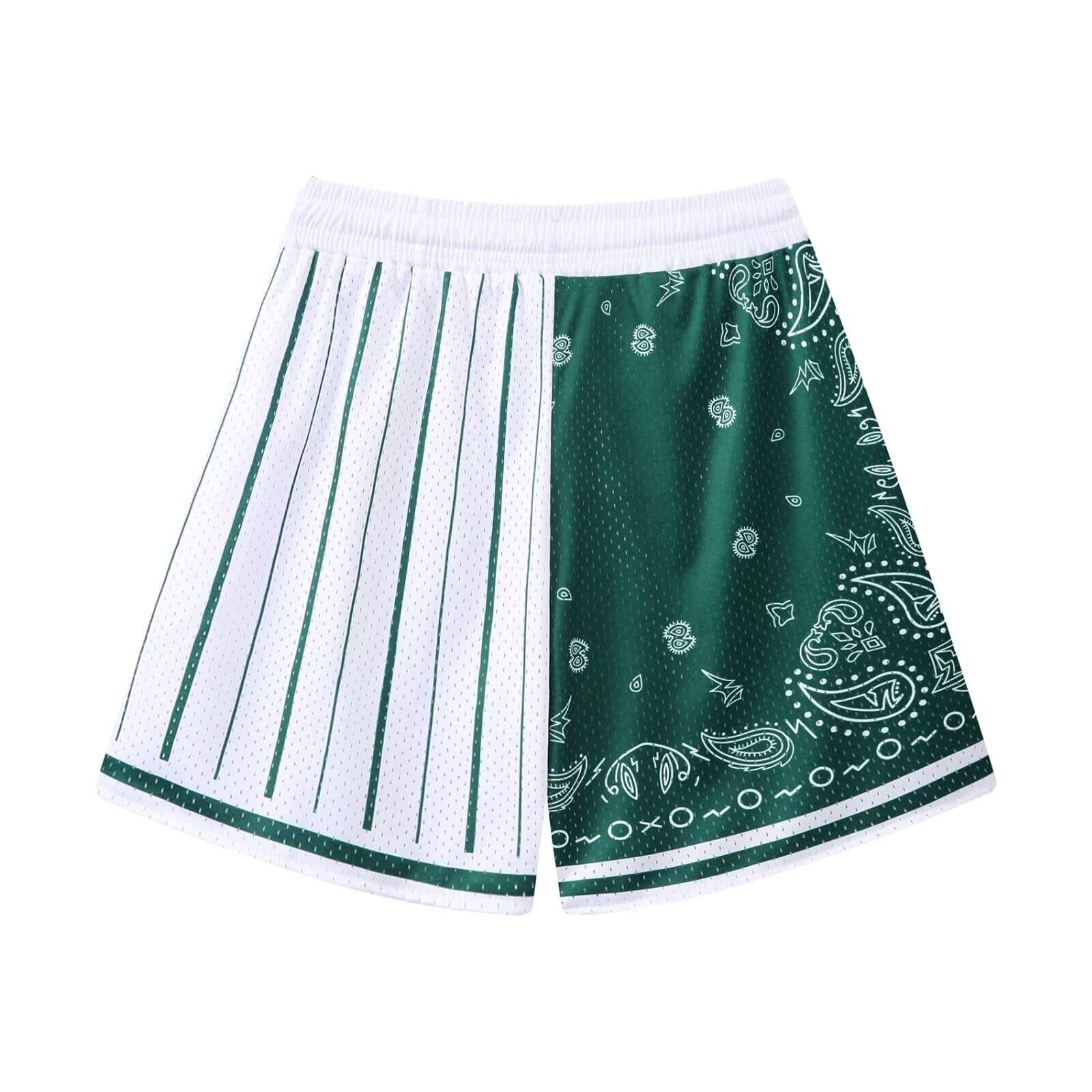 [OROLN] バスケットパンツ メンズ スポーツ アメリカン短パン ペイズリー柄 ウェア ランニング トレーニング ショートパンツ ポケット付き ウエスト 調整可能 速乾 通気