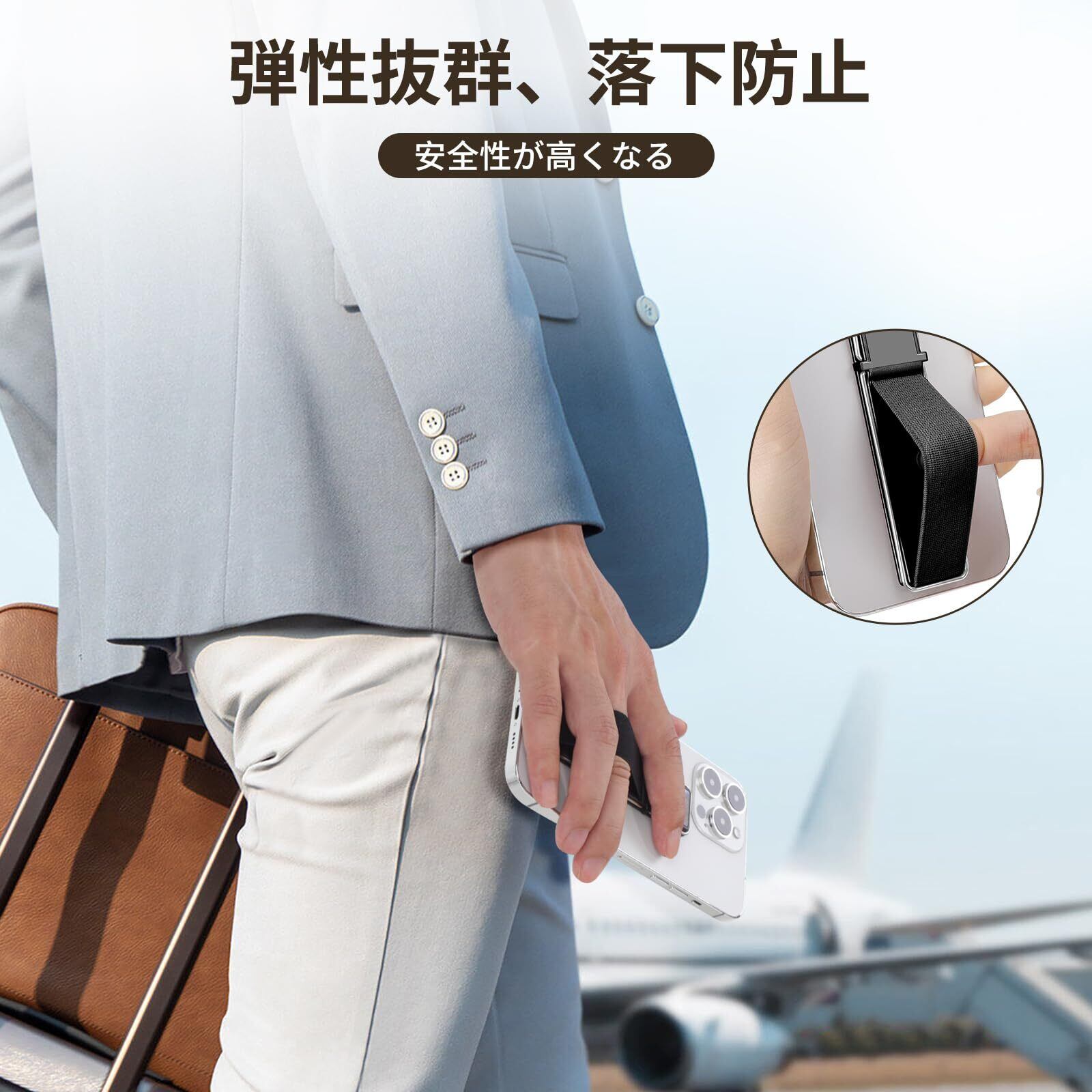 【強力な接着力&弾力】フィンガーストラップは普通のスマホリングより柔らかく快適です。弾力たっぷりで、指3本でも簡単に入りる。スマホリングは超強力な両面テープを採用し、長時間使ってもヘタれていません。(粘着力高くなるため、製品を貼り付けから6時間後に使用してください。)