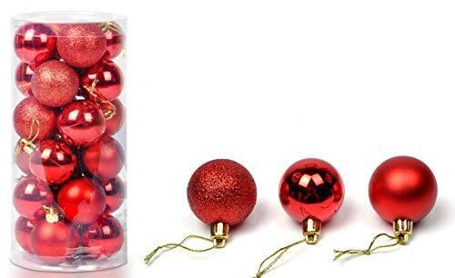 amaletPlay クリスマス 飾り ボール オーナメント 24個 球 玉 Xmas 装飾 アレンジ デコレーション 40mm 赤 (4cm, レッド)