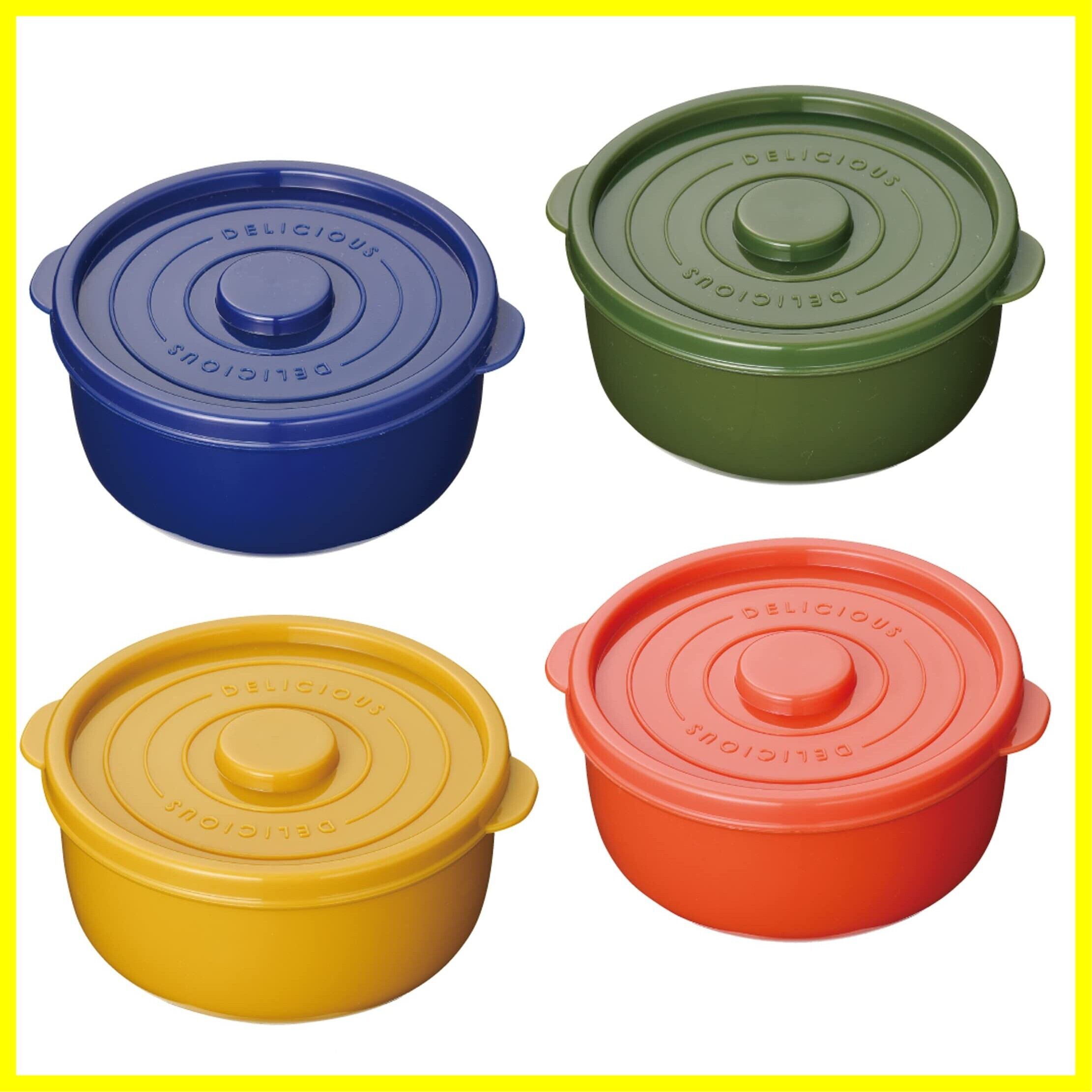 ベーシックスタンダード ココット オシャレ かわいい 弁当箱 丸型 食品 保存容器 耐熱 プラスチック 密閉 冷凍 食洗機 電子レンジ対応 4色セット 300ml ラージサイズ