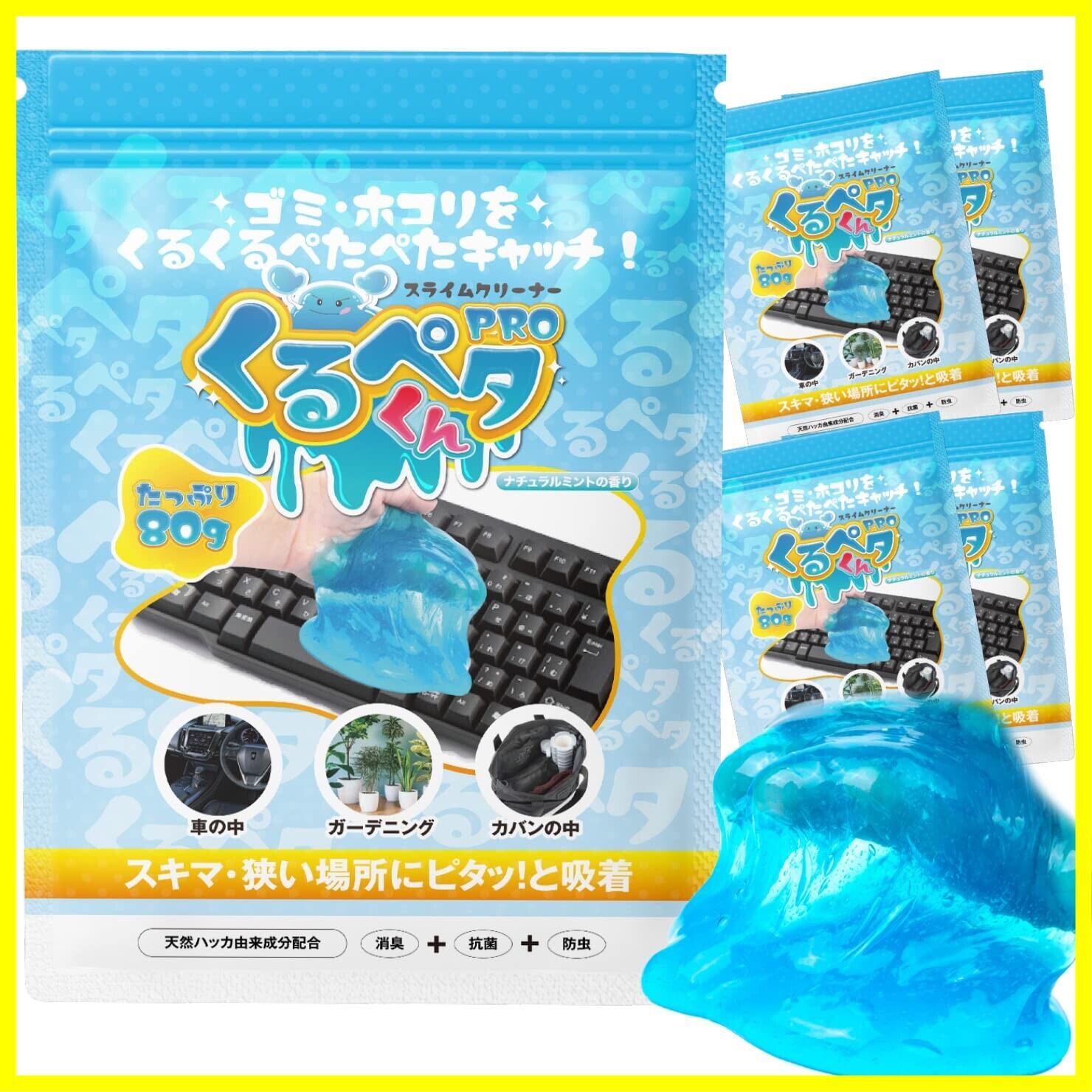 くるペタ君 年末 大掃除 簡単お掃除スライム型クリーナー べたつかずにホコリを吸着 狭いキーボードや車のすき間汚れをスッキリお掃除 除菌効果 80g×5袋