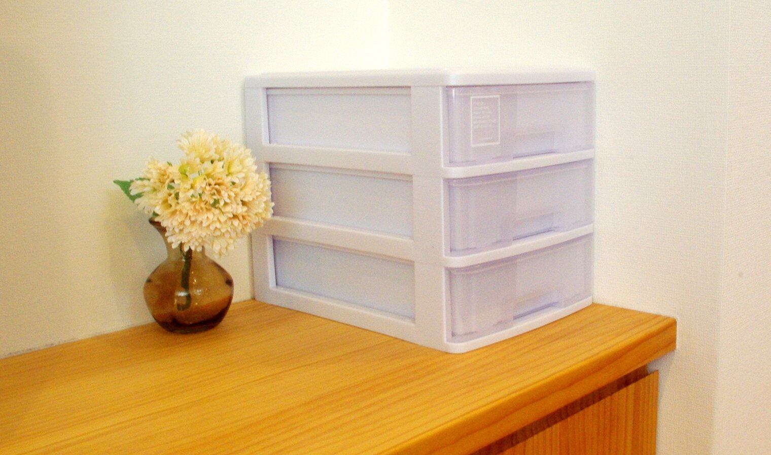 ●小物入れにはもちろん、書類整理にも便利なA4タイプの3段引き出し