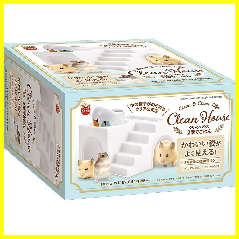 2階部分に食器が置ける、階段付きのハムスターハウスです。天面の透明窓から、中の様子を覗くことができます。