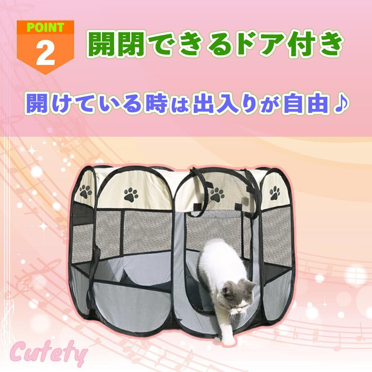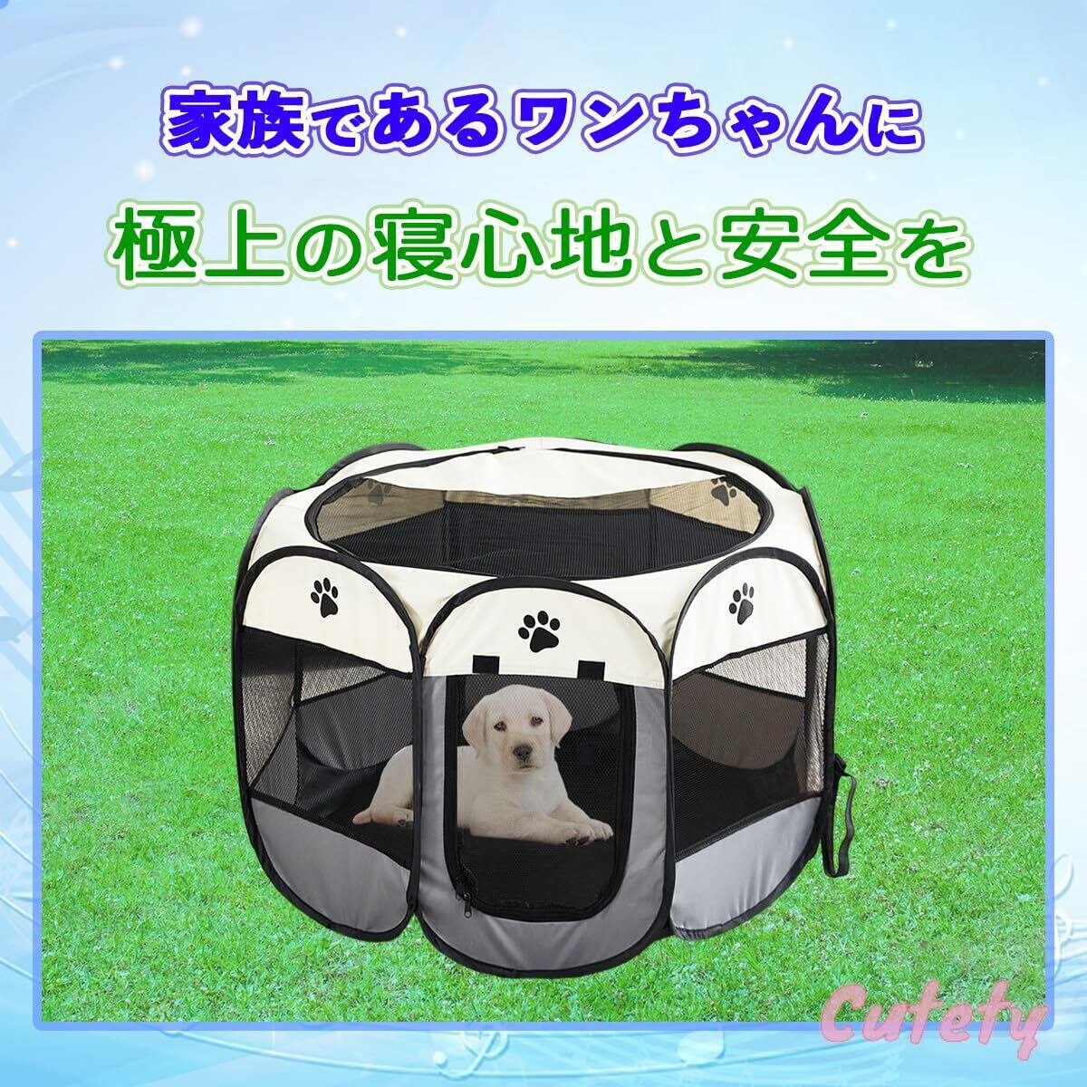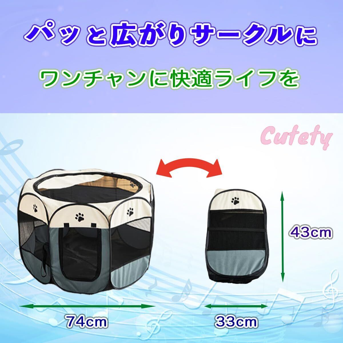 【Cutetyブランド】折りたたみペットサークル(Sサイズ:横74cm×高さ43cm)