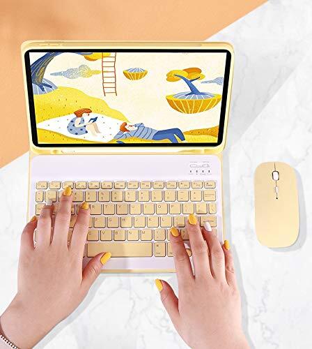 マウス付き iPad 第 9 8 7 世代 10.2インチ キーボードケース かわいい キャンディーカラー レディース iPad9 iPad8 iPad7 アイパッド 10.2 分離式 カラーキーボード付き ケース カバー ペン収納可能 女性 人気 (黄色)