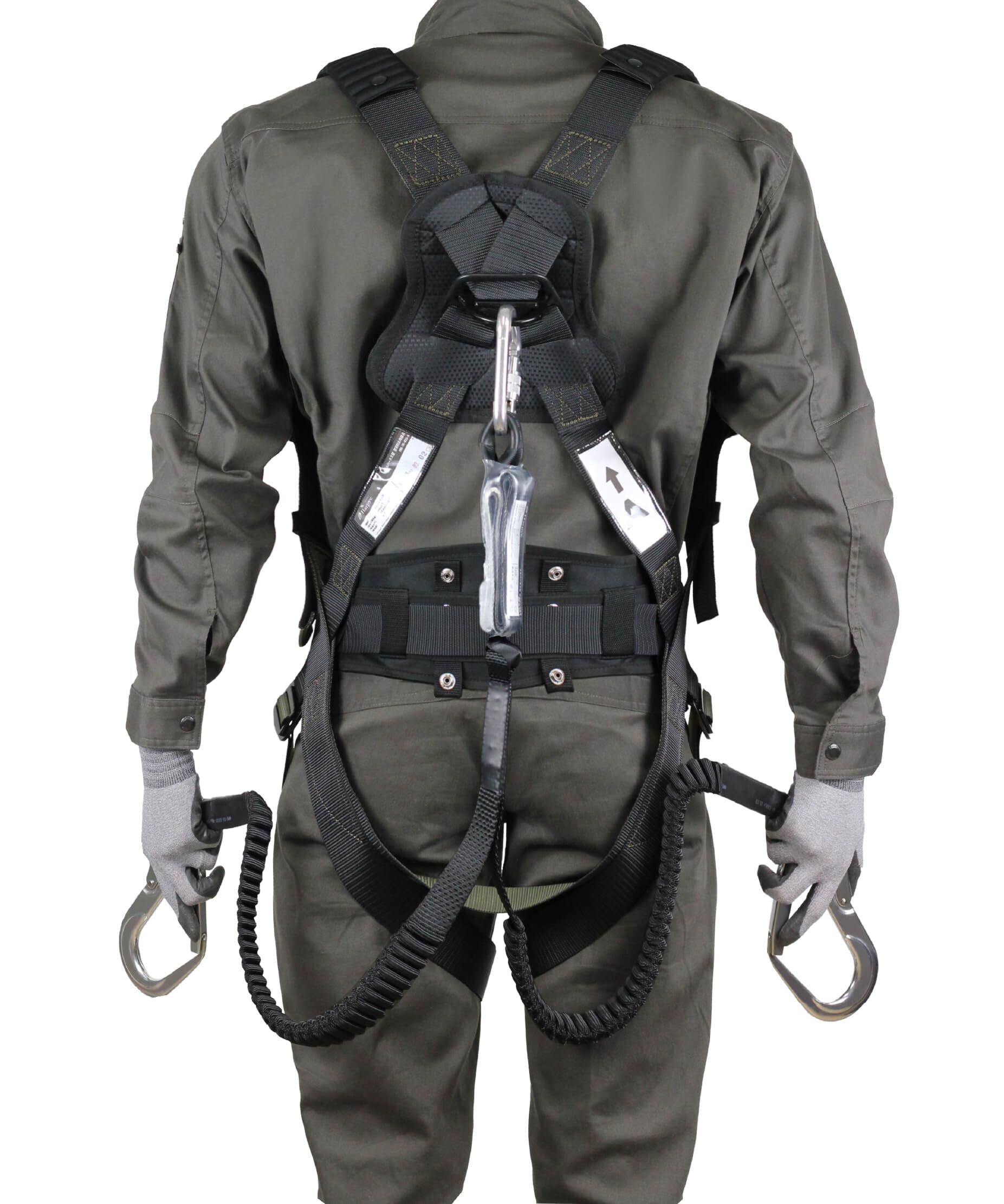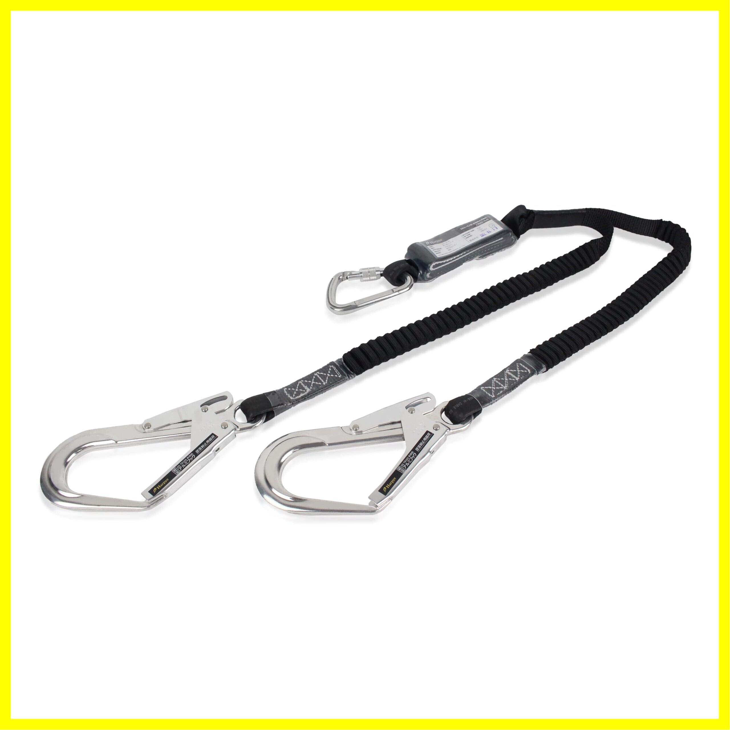 [新規格適合] フルハーネス型用 ダブルランヤード[2丁掛け] 伸縮式蛇腹 軽量アルミフック 第一種 墜落制止用器具 100KGまで適合 安全帯