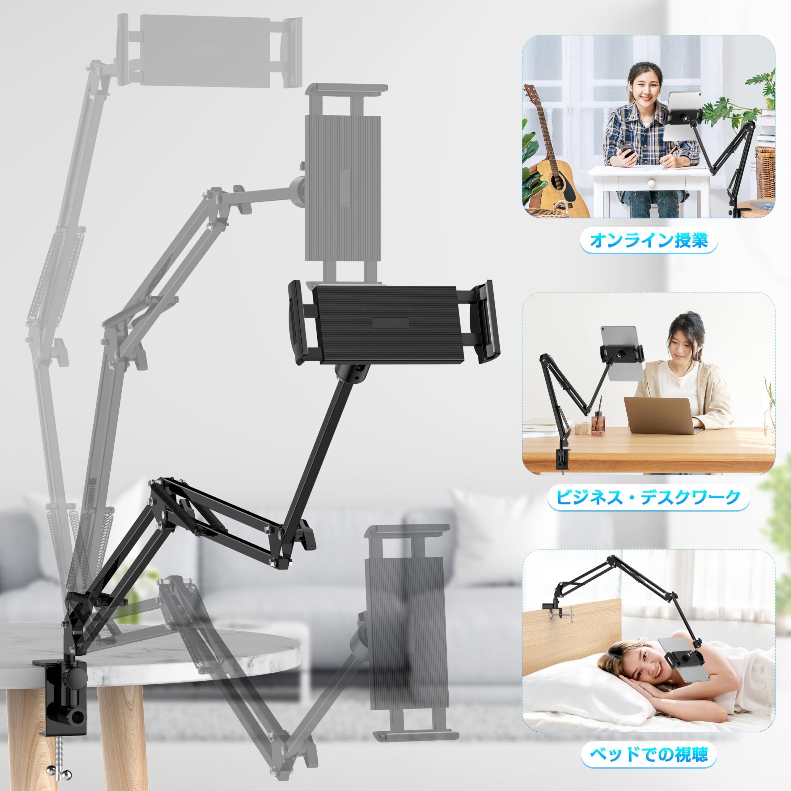 ipad スタンド アーム タブレット スタンド 寝ながら ベッド用 スマホスタンド ベッドサイド 360回転 スマホ スタンド/ホルダー アーム ケーブル固定具付き iPad iPad Pro iPhone Android Switch Kindle surface 多機種対応 日本語取扱説明書