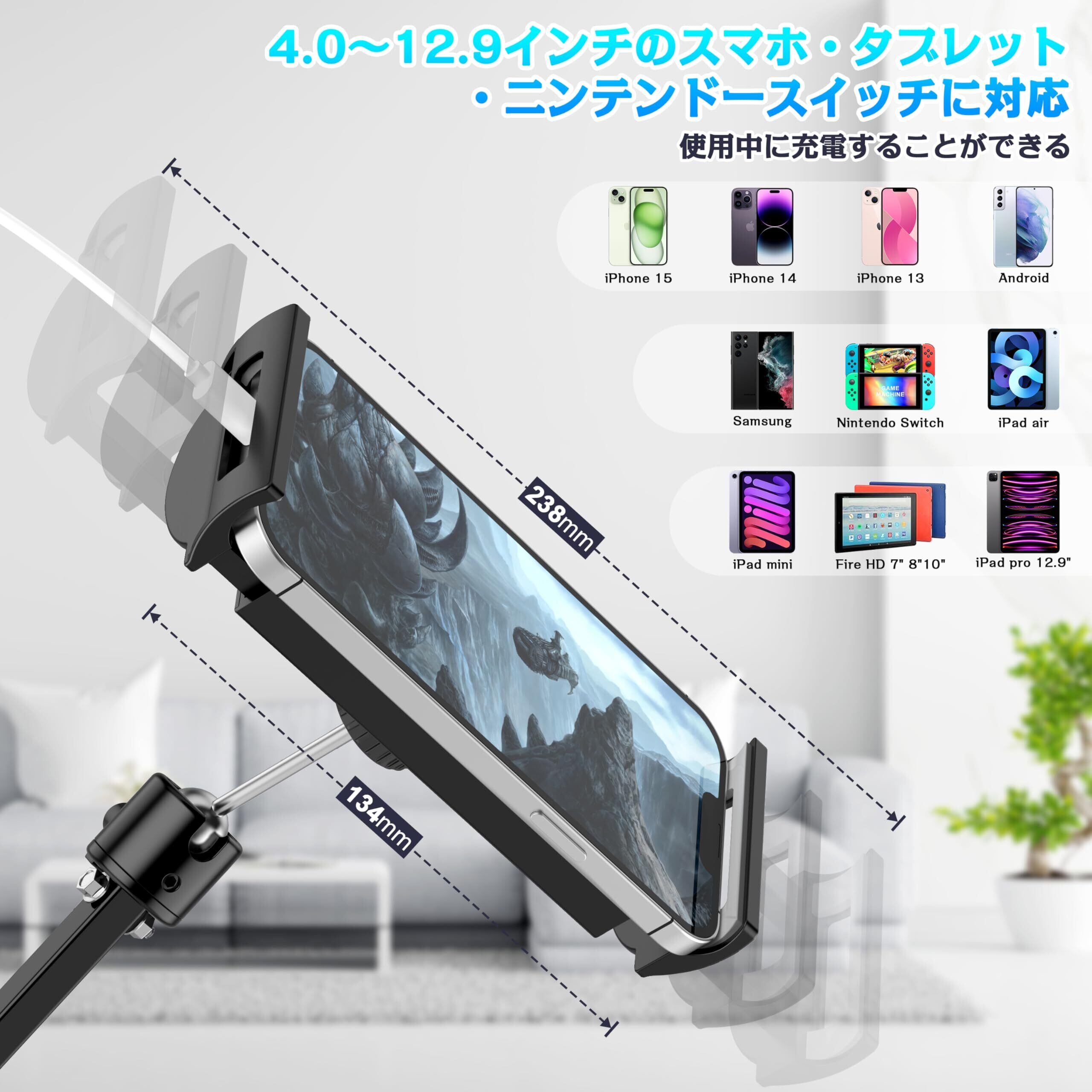 【幅広い互換性と多様な用途】 本製品は4.0〜12.9インチのスマホ、タブレット、ニンテンドースイッチなど、幅広いデバイスに対応しています。例えば、iPad Pro (7.9 / 9.7 / 10.5インチ)、iPad Air (2 / 3 / 4)、iPad Mini (2 / 3 / 4)、Samsung Galaxy Tab (S8 / S7 / S6)、Note (6 / 5)、LG、Sony、Android Nexus 7、Kindle、Nintendo Switch、Fire HD 8、Huawei MediaPad、iPhone (XS / XS Max / XR / X / 8 / 7 / 6 / 6s Plus)など、あらゆるデバイスで使用可能です。ベッドでのリラックスタイム、キッチンでのレシピ参照、ジムでのトレーニングガイド、カフェでの作業など、あらゆる場所で便利にお使いいただけます。
