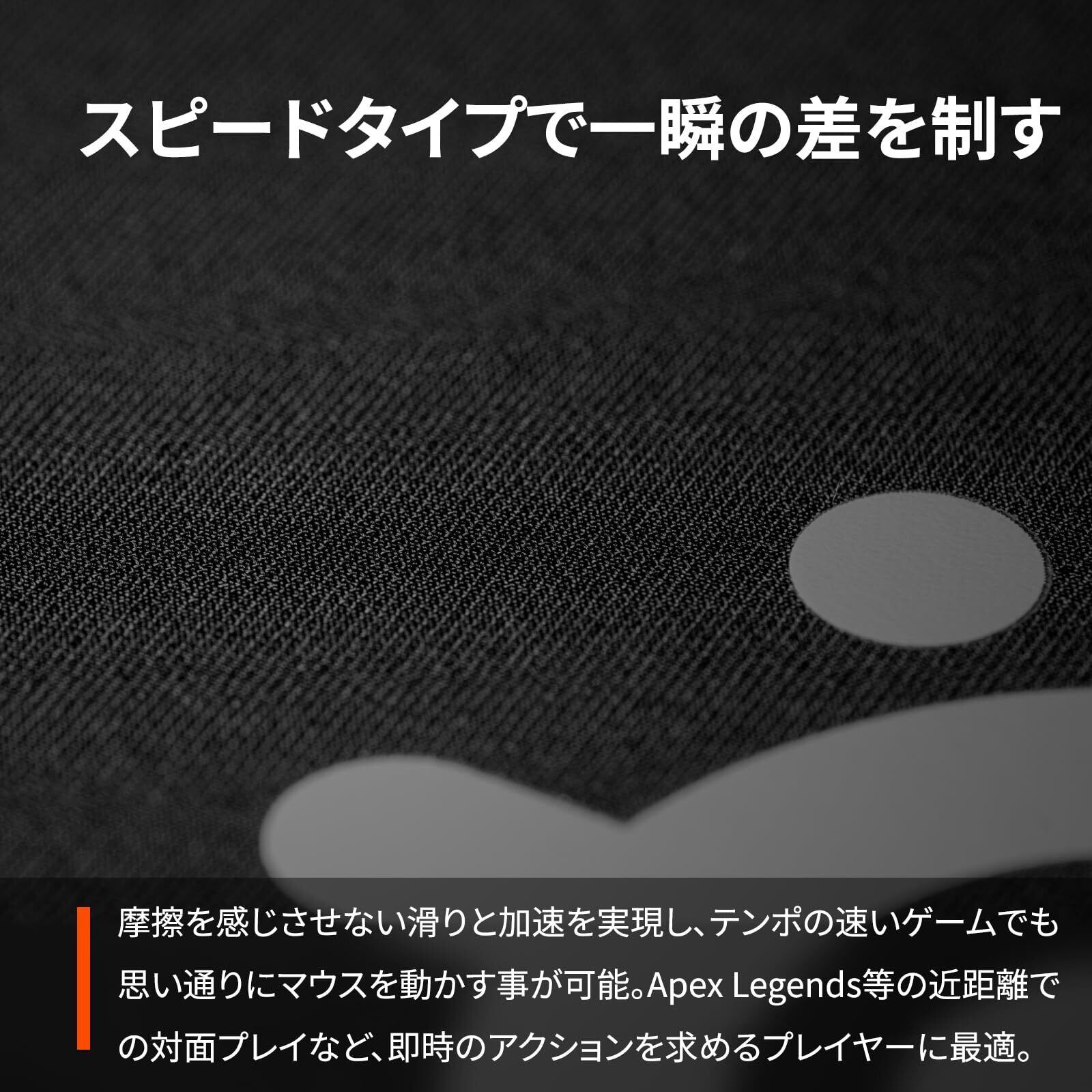 【スピードタイプで一瞬の差を制す】摩擦を感じさせない滑りと加速を実現し、テンポの速いゲームでも思い通りにマウスを動かす事ができます。Apex Legends等の近距離における対面プレイなど即時のアクションを求めるプレイヤーに最適です。