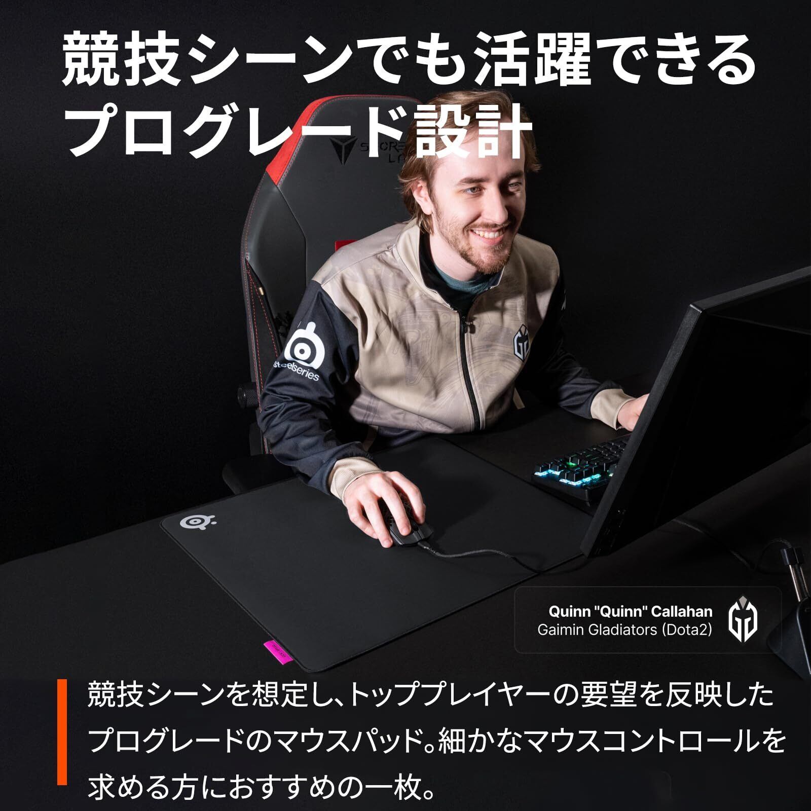 【競技シーンでも活躍できるプログレード設計】競技シーンを想定し、トッププレイヤーの要望を反映したプログレードのマウスパッド。細かなマウスコントロールを求める方におすすめの一枚です。