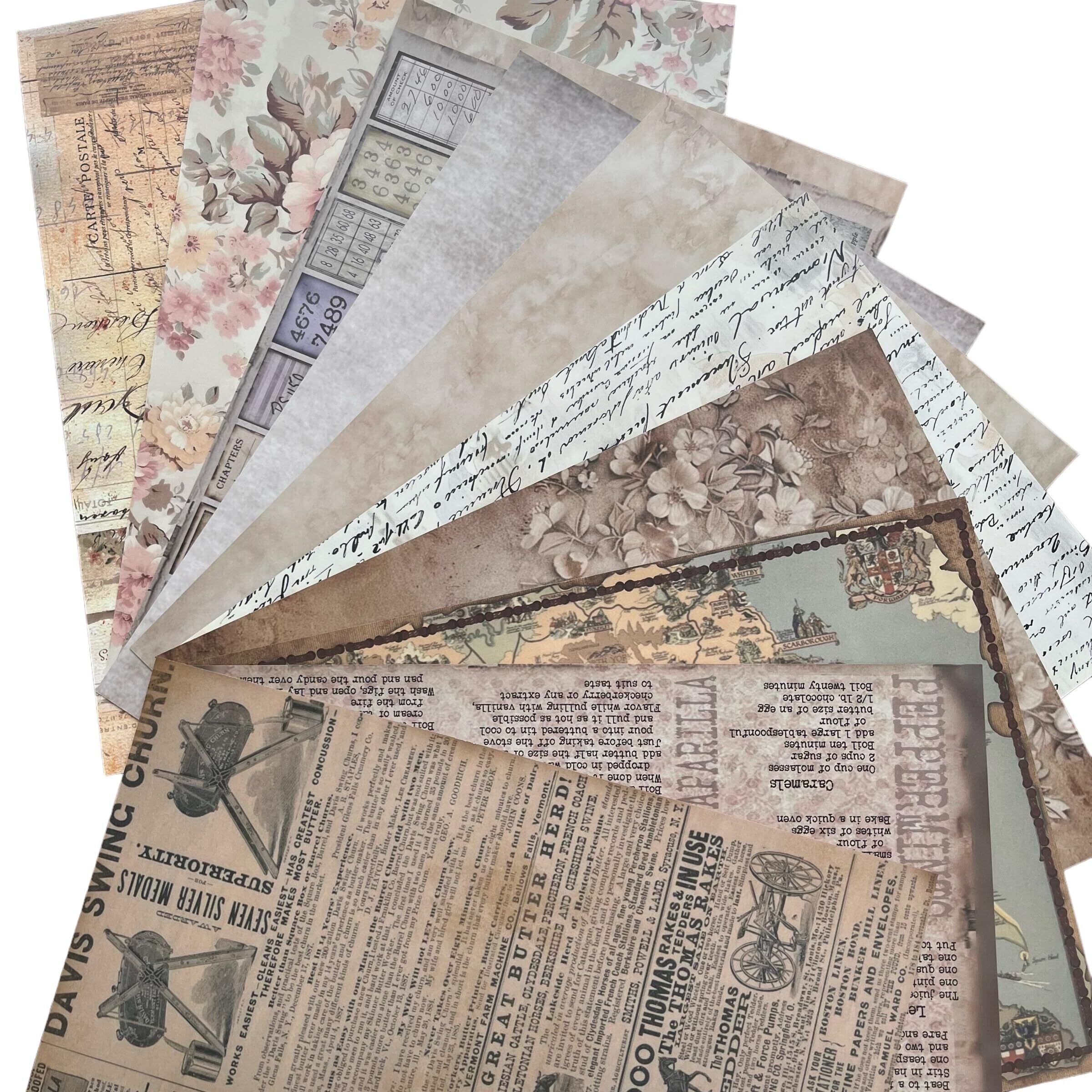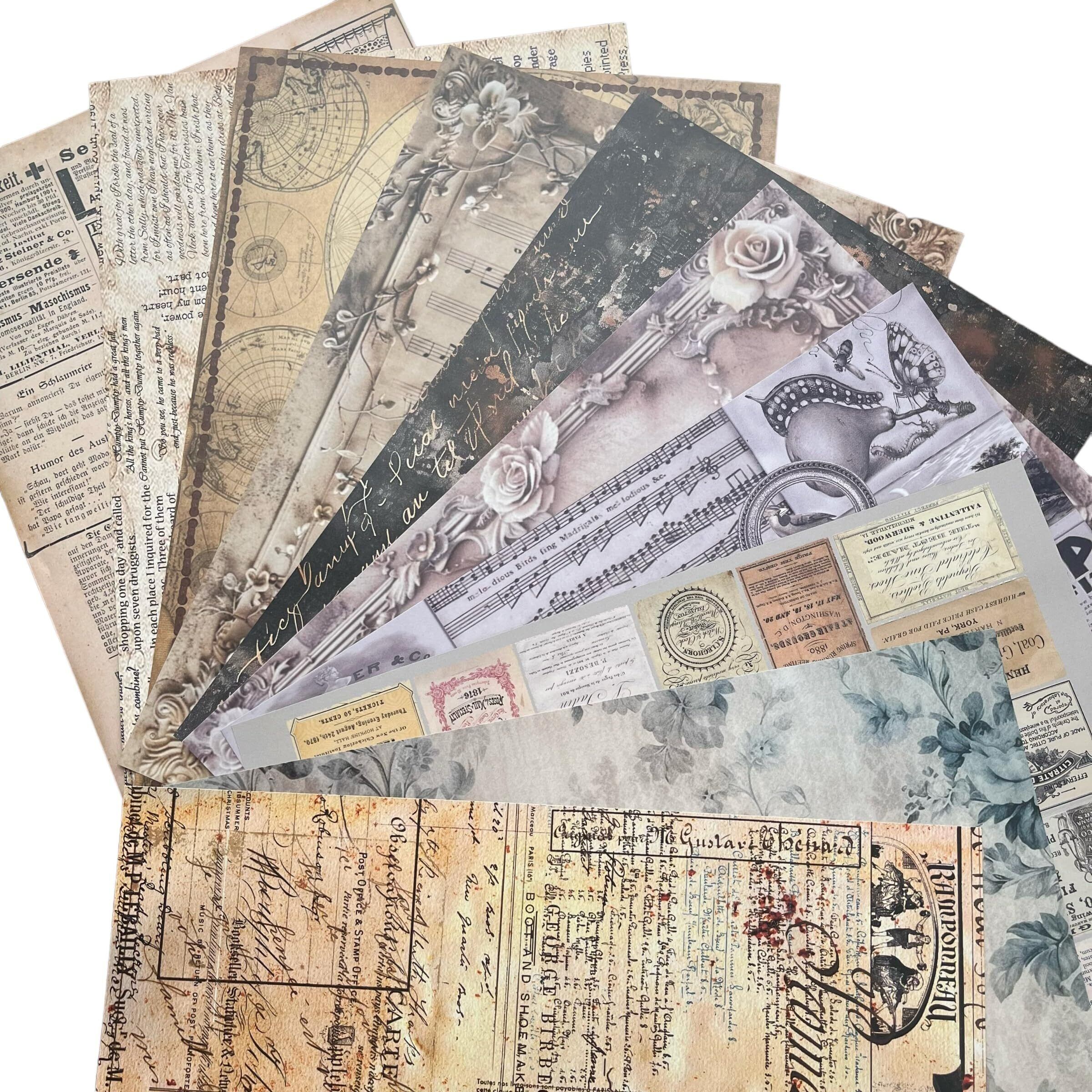 A4サイズのオリジナルデザインペーパー です。両面印刷。アンティーク調の柄を集めました。両面お好きな柄をお使いください。 コピー用紙よりも厚め0.12mmの上質紙90kgを使用。 包装紙、コラージュ素材、ジャンクジャーナル、ブックカバー、台紙、工作、POP、表紙、などなど使い道自由です。 ※パソコン上の色味と現実の色味は異なる見え方がある場合がございます。